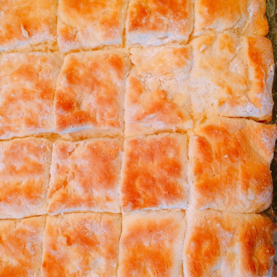 Pat dough out and cut biscuits into squares with a pizza cutter.