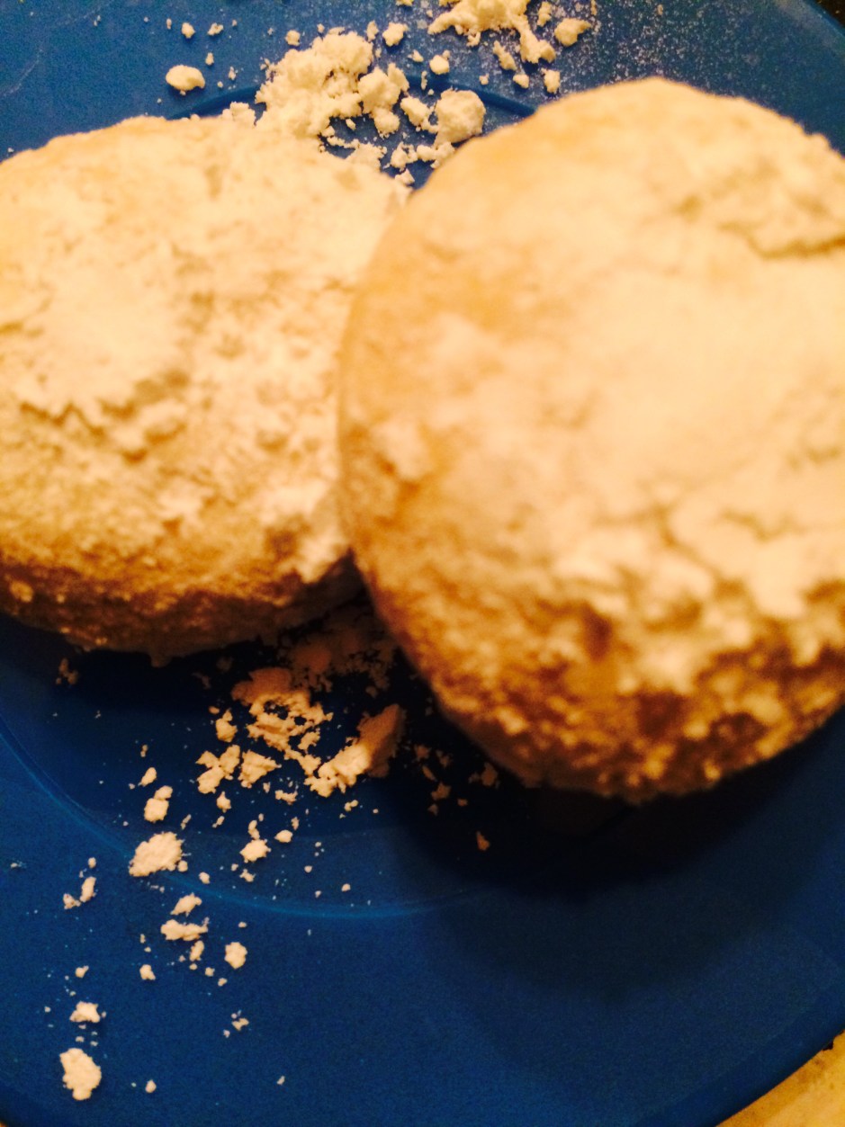 Roll the warm cookies in powdered sugar and return to a cooling rack to cool.