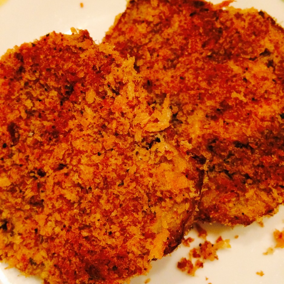 Put the bread crumbs in a shallow dish, I like to use a pie plate.