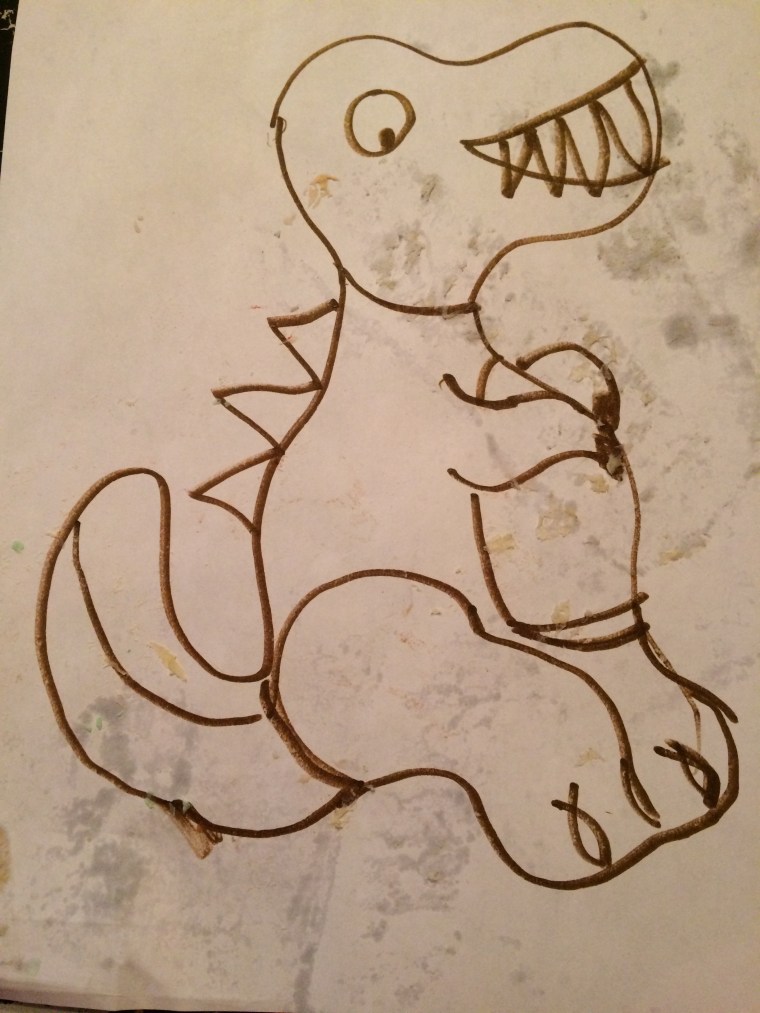 This was Joey’s 5th birthday cake. He was so into dinosaurs and he couldn’t decide between Chewbacca or a T-Rex. Personally, I think Chewbacca would’ve been easier.