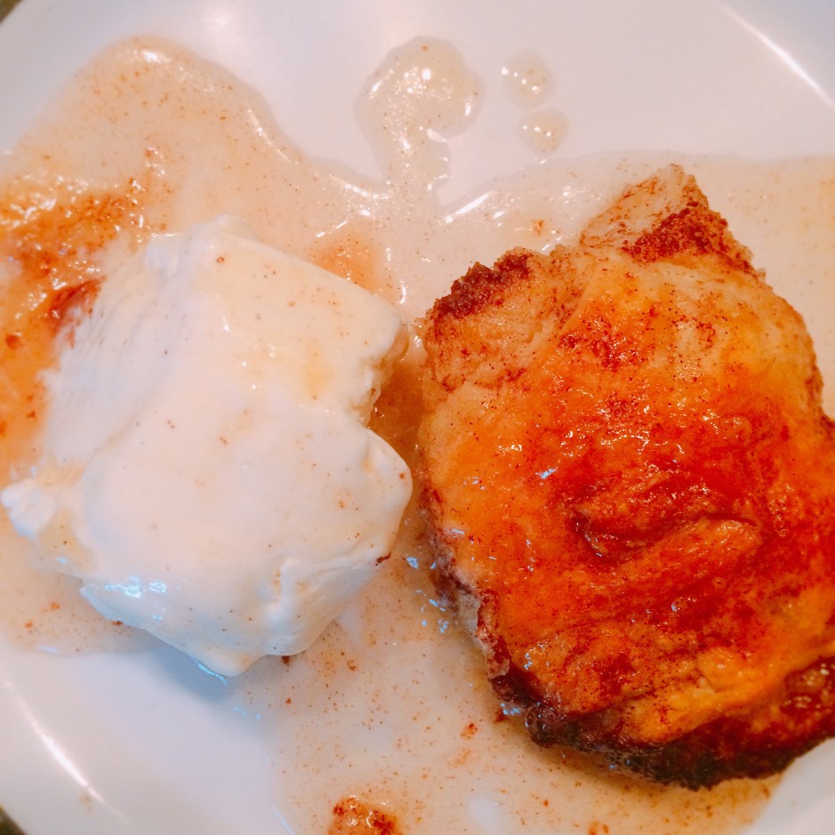 While baking melt the butter in a saucepan. Add the sugar and cinnamon.