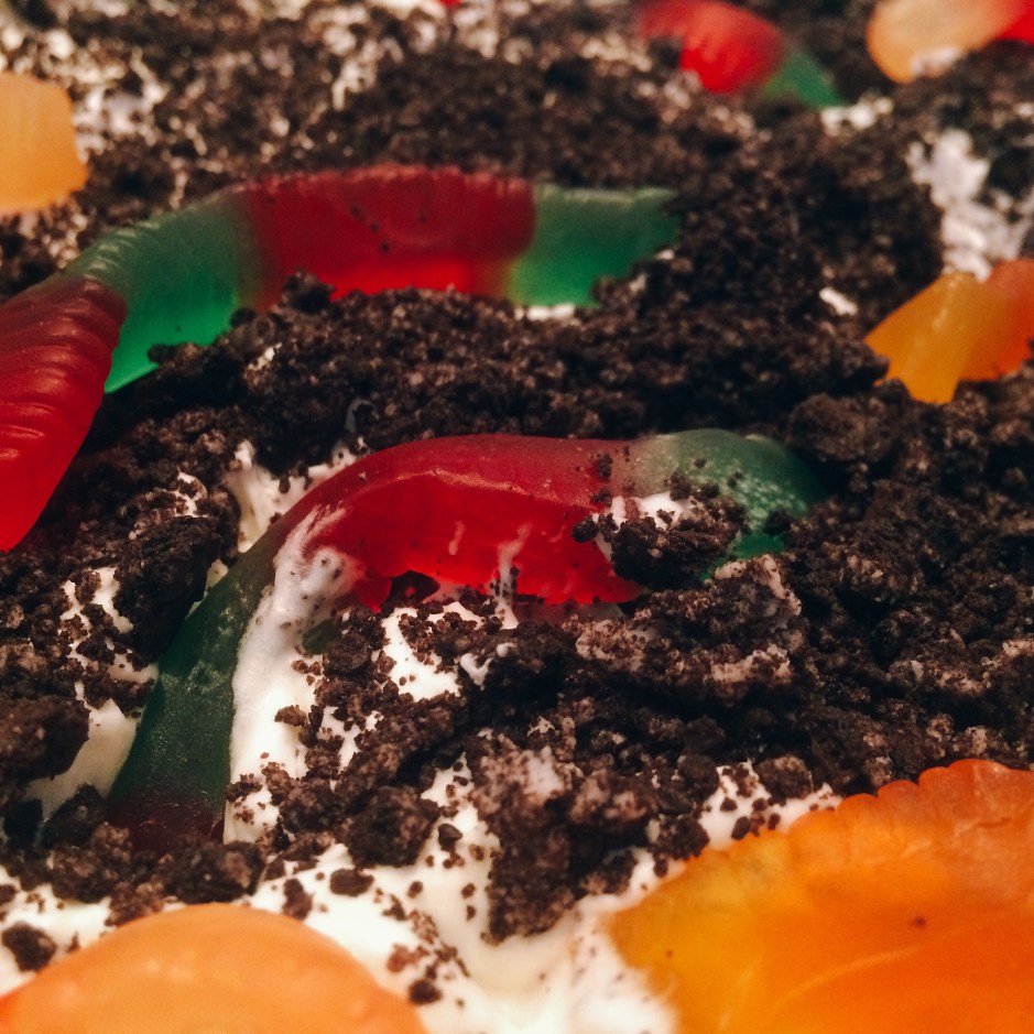 I think everyone has probably seen, if not eaten, some version of this incredibly easy dessert. My kids love it and sometimes we will dress it up with gummy worms. This also works well for parties and such if made in individual plastic cups.