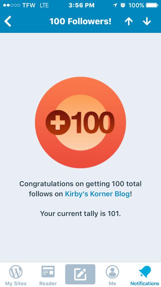 I just received my ‘100 followers’ notifications and shortly after it went to 101! I am so excited that so many people have followed my blog in the short time I’ve had it up.