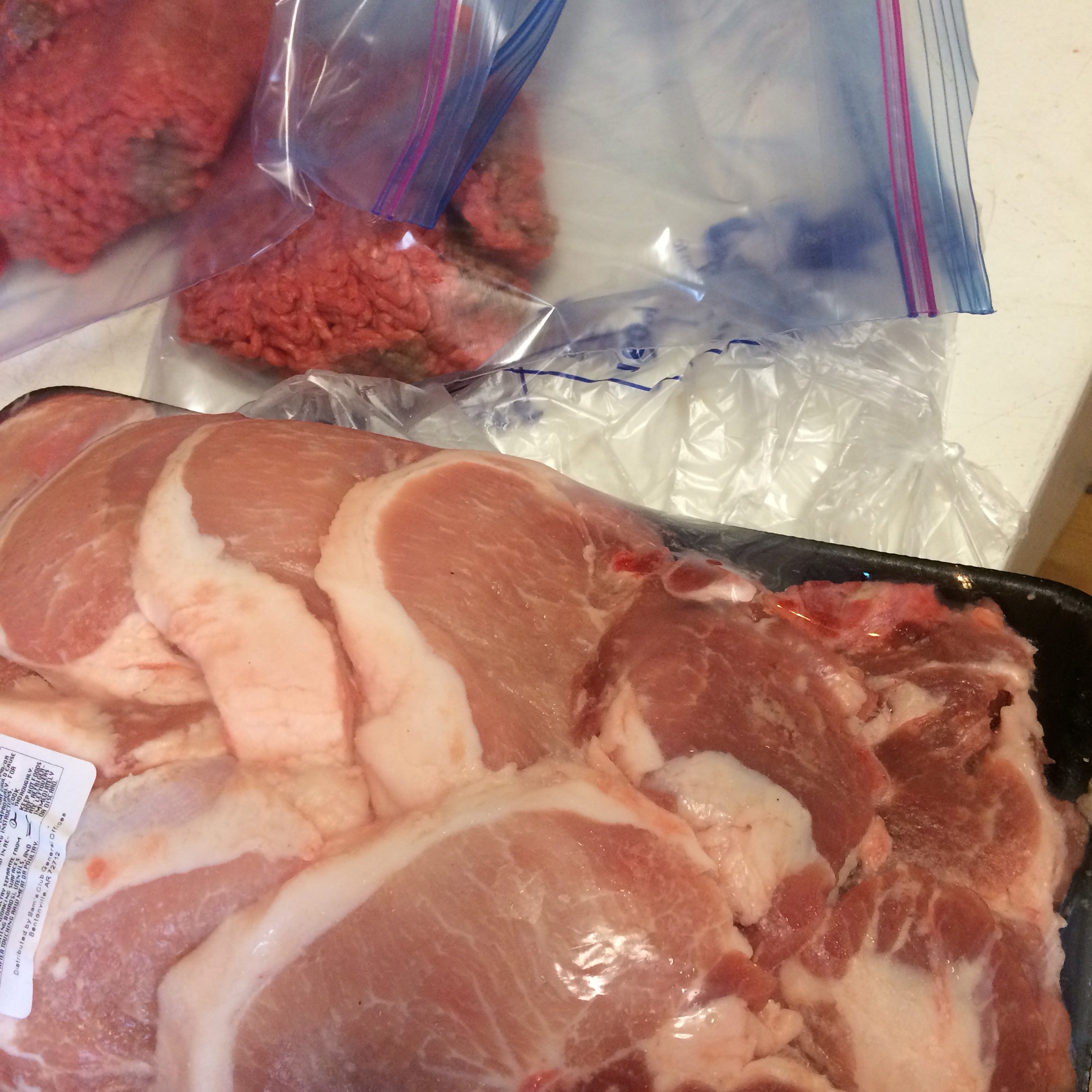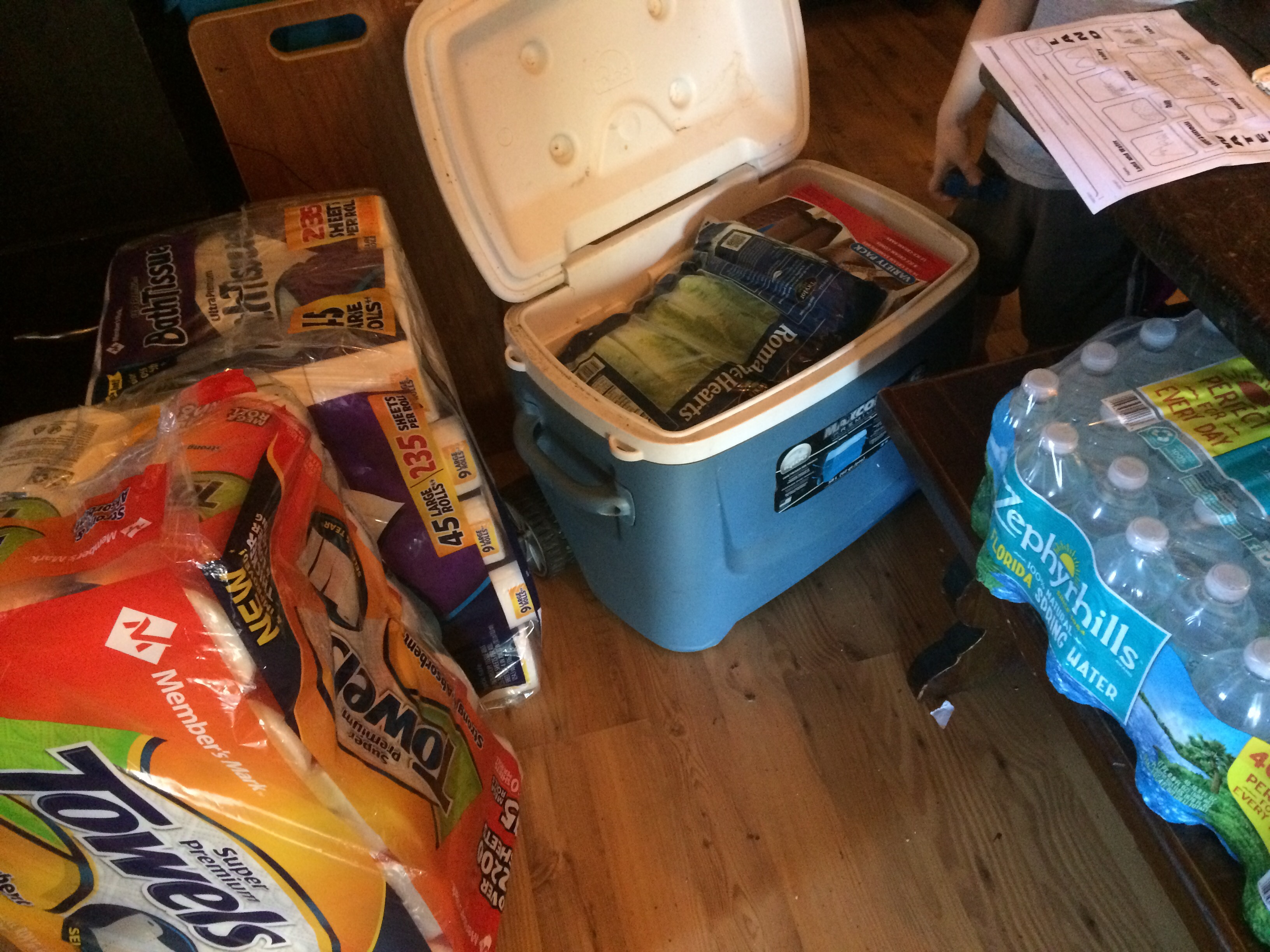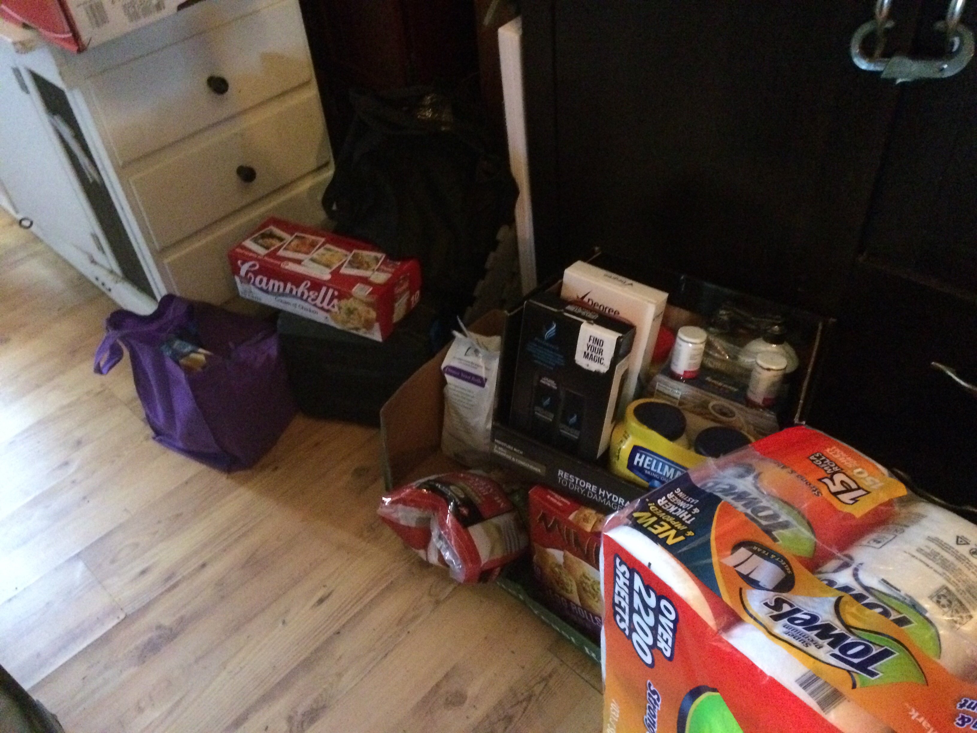 It was quite a mess but we started with the cold stuff and then worked out way through the bathroom supplies, then the dry goods, and finally, I am finishing up with the meat I had in the cooler. Yay!
