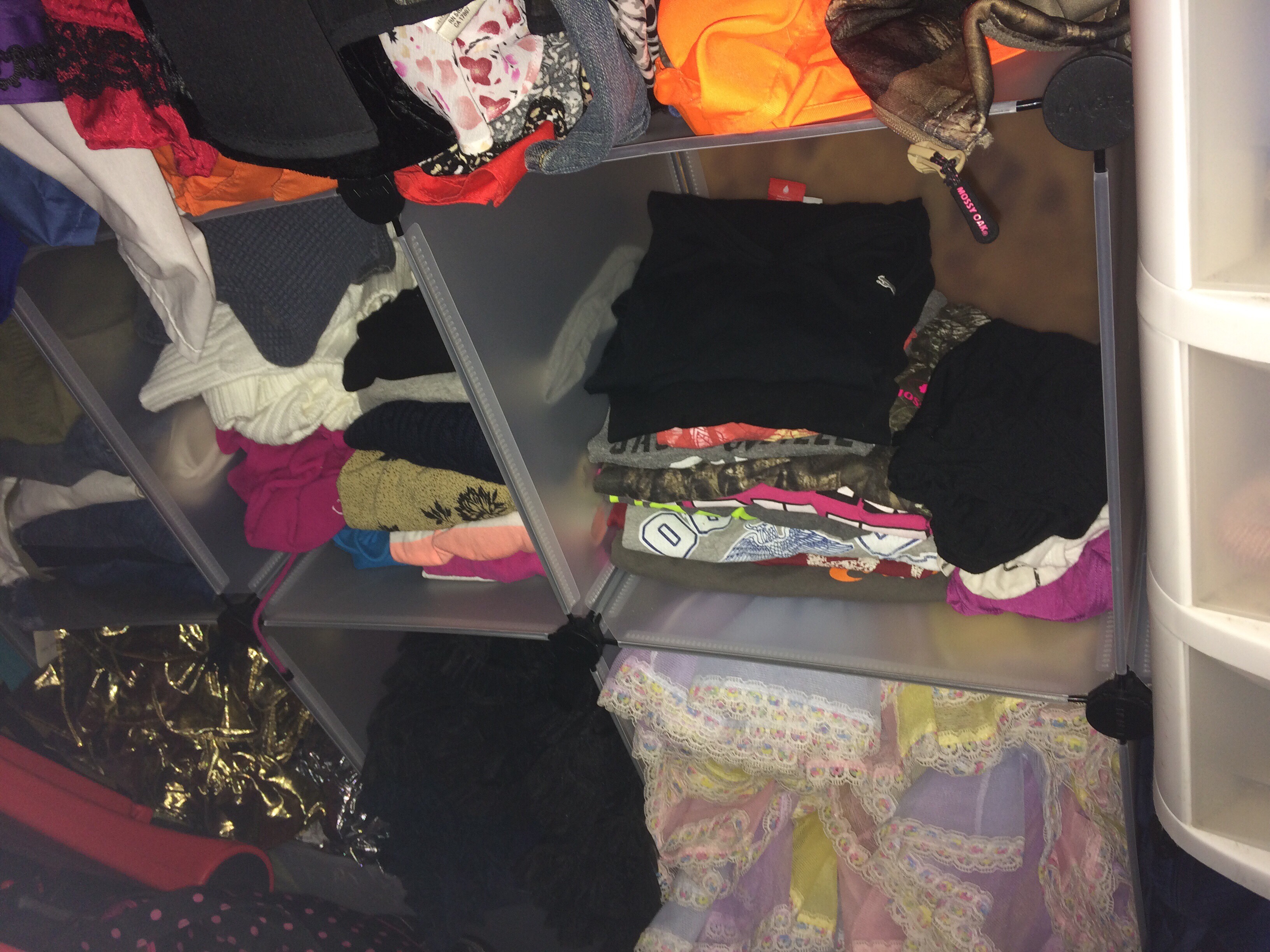 It may not look very organized but it is so much better than it was! It’s hard to see but I made ‘bins’ to store my crinolines in.