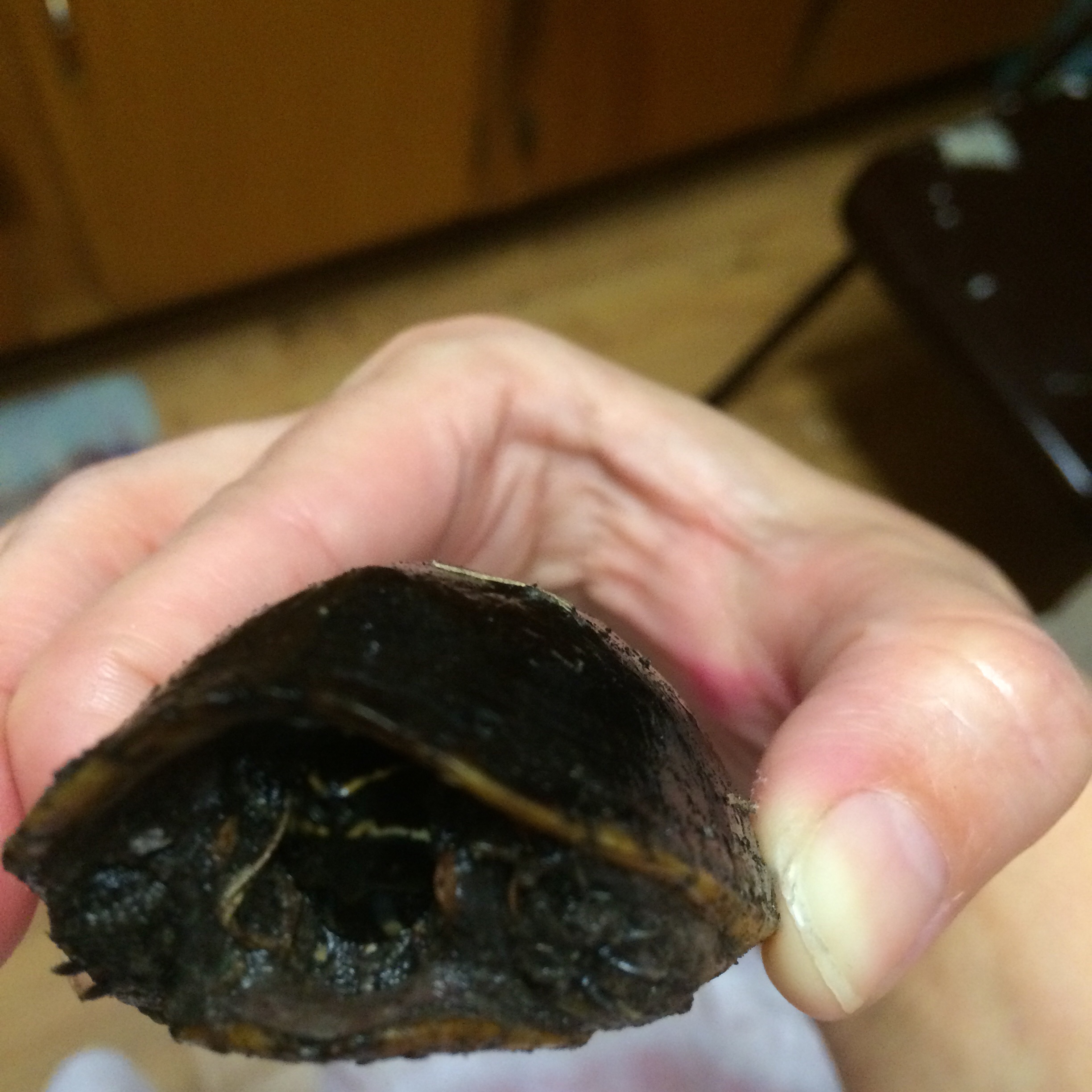 We arrived home and I noticed that there was the biggest bug I’d ever seen crawling away from the porch. Upon closer inspection I realized it wasn’t a bug but a baby turtle!