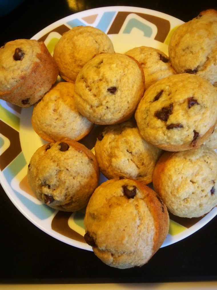 I think these would make some great chocolate muffins too if you add about 1/4 c. Cocoa and maybe another 1/4 c. Brown sugar to the mix. You might could even substitute white chocolate chips too for an even yummier treat. All this pondering is making me wanna whip up another batch of these to try with these substitutions.