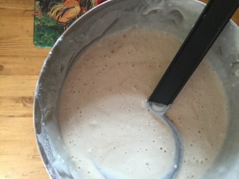 Jacob was super motivated. He was up early in the morning and snuck a drink or two of my coffee so he could be ready to work. After getting dressed he came to help with breakfast.