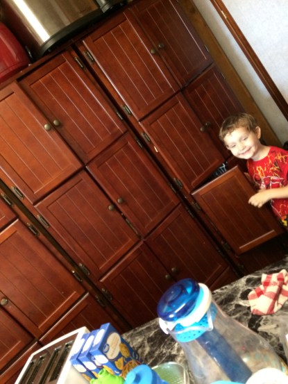 Ahhhh… it’s Wednesday, hump day, and we are halfway through a whole week of working in our kitchen here. (I started writing this yesterday.) Today was a tough day for us here with cranky kiddos and many, many interruptions. Jacob was really excited to get started this morning.