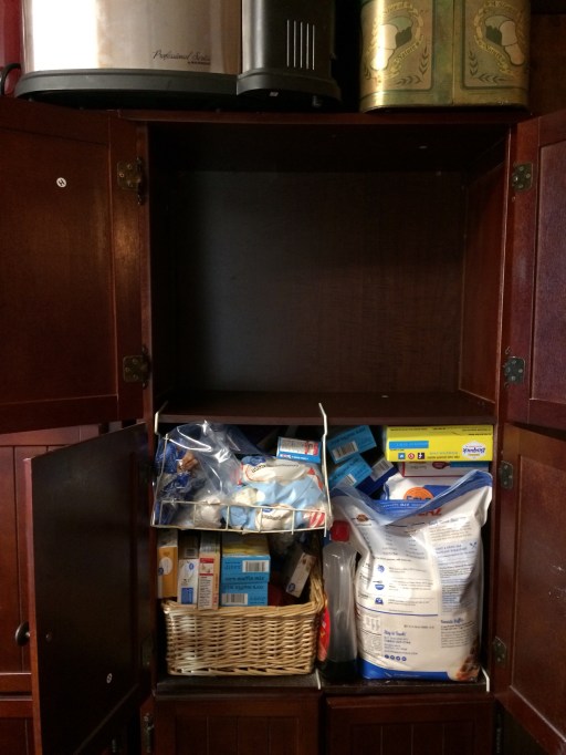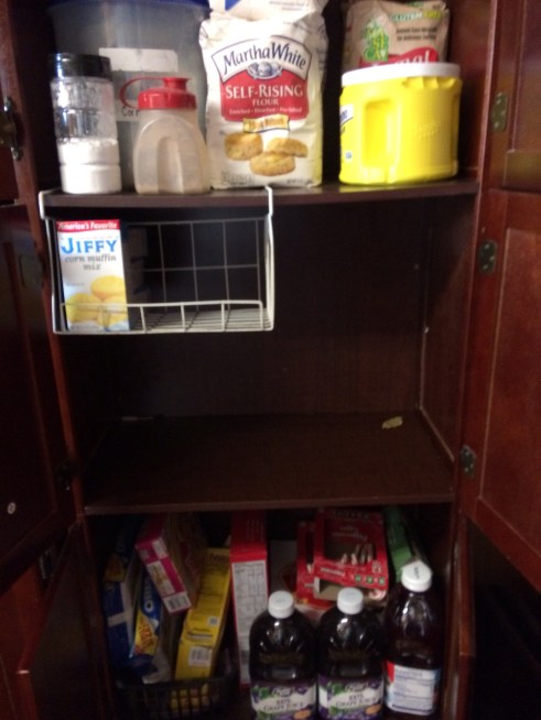 We moved the canned goods to the top shelf where the breakfast items were so that they are more visible and accessible. I really need to head to Sam’s Club soon to restock on some of our staples.