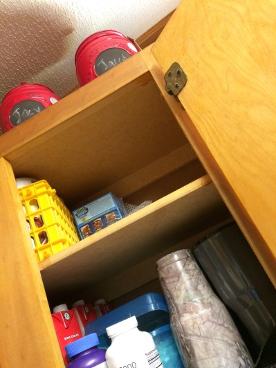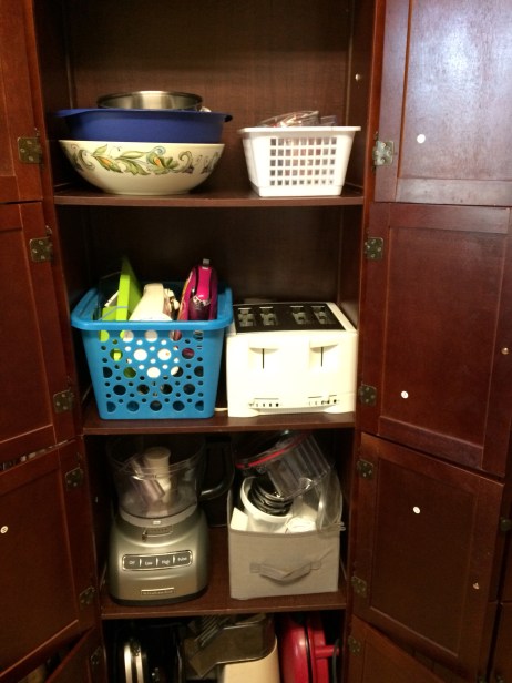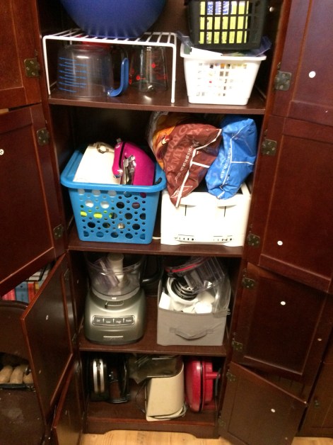 When we finished with the foods we moved on to the appliance cabinet. As you can see it wasn’t working well as part of the food processor was in one cabinet with the other parts were down below.