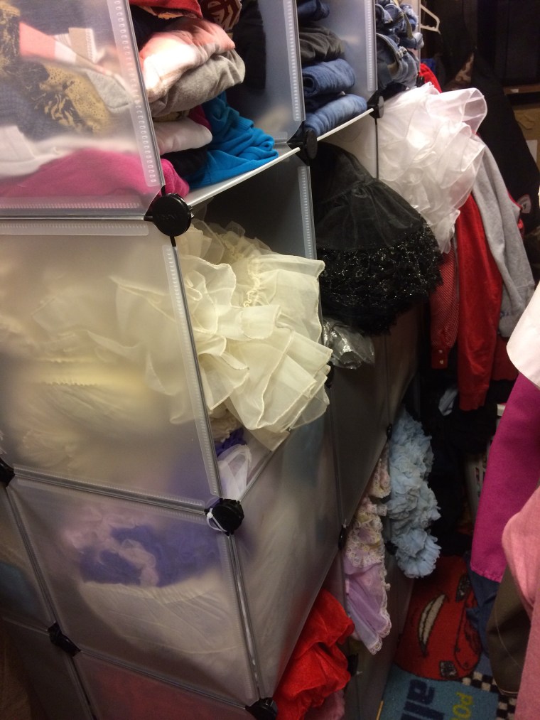 We cleaned it up and I sorted through my crinolines and put away a trash bag full of them to resell. It made a bit of difference and should help out a lot when I need to find a certain one in the future.
