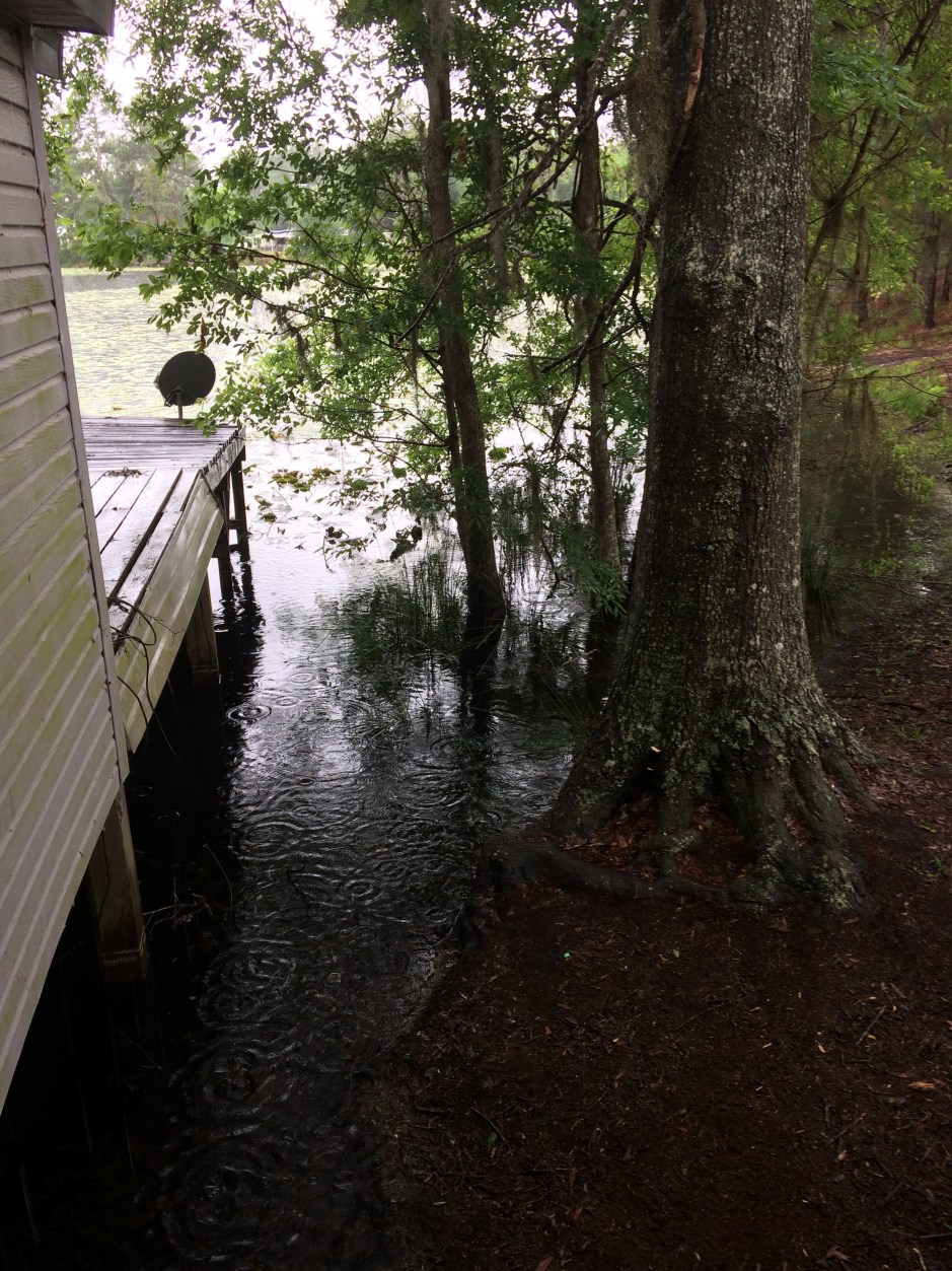 We do have a fairly nice porch that we can use when the weather is gloomy but it does have a few leaks. I also have a good portion of it tarped off for storage right now as well. We do enjoy going out to feed the fish and watch the wildlife but with the rain their hasn’t been a whole lot of wildlife to see.