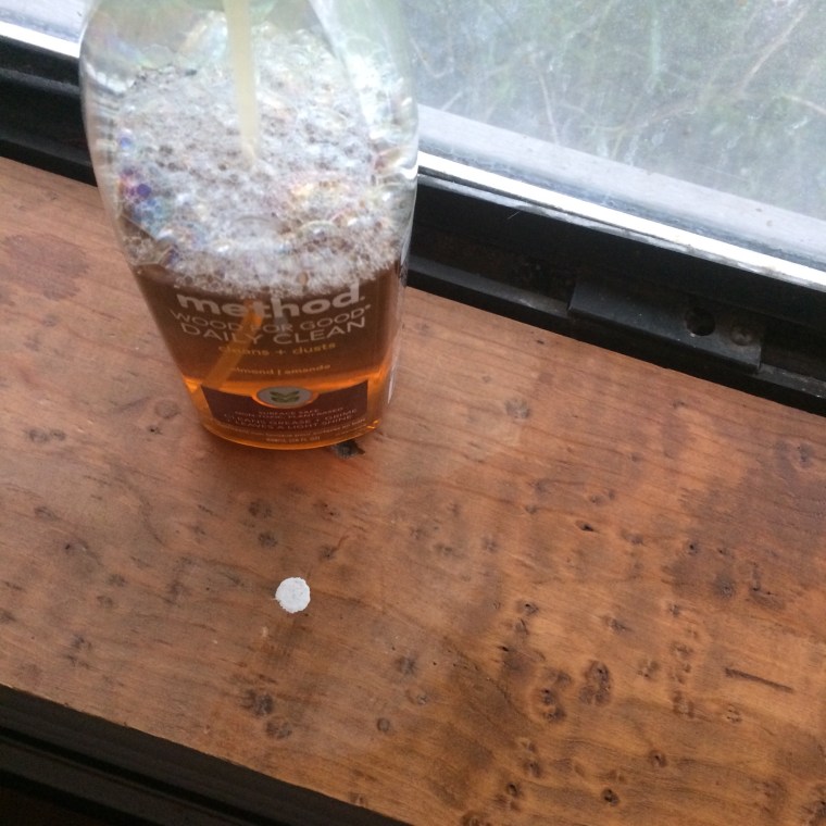 Can you see the difference? Now I’m sure if I had used a little more elbow grease it would’ve made a bigger impact but I don’t want to get the wood too wet.
