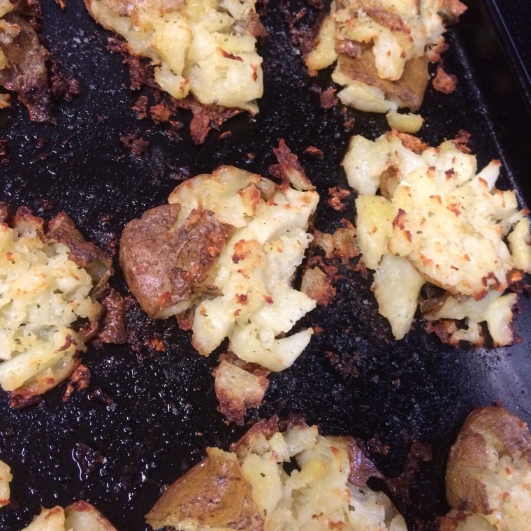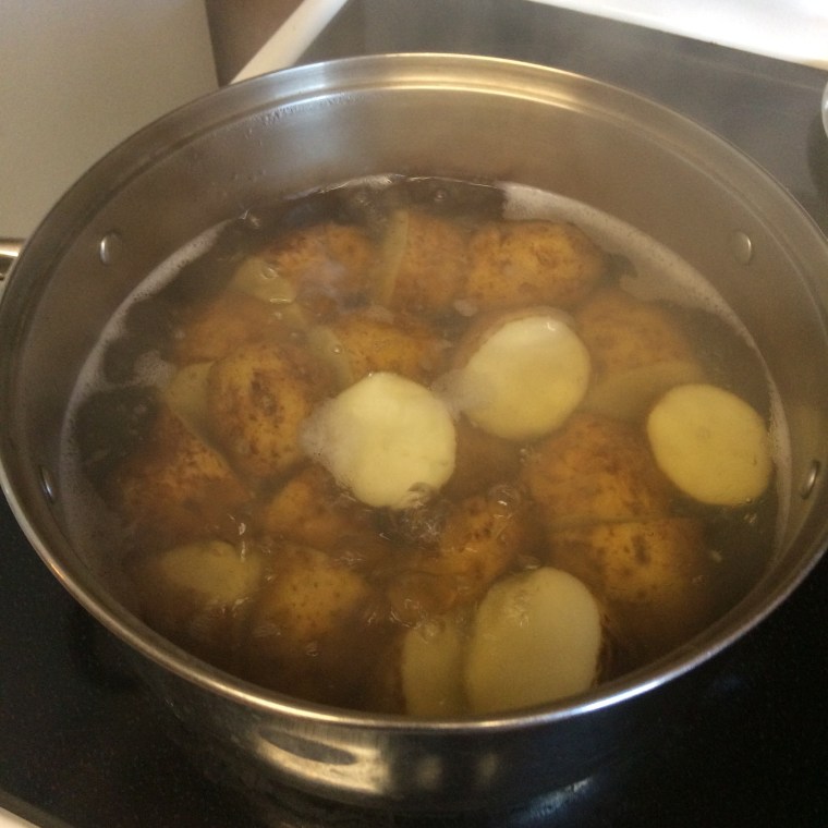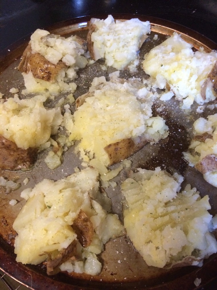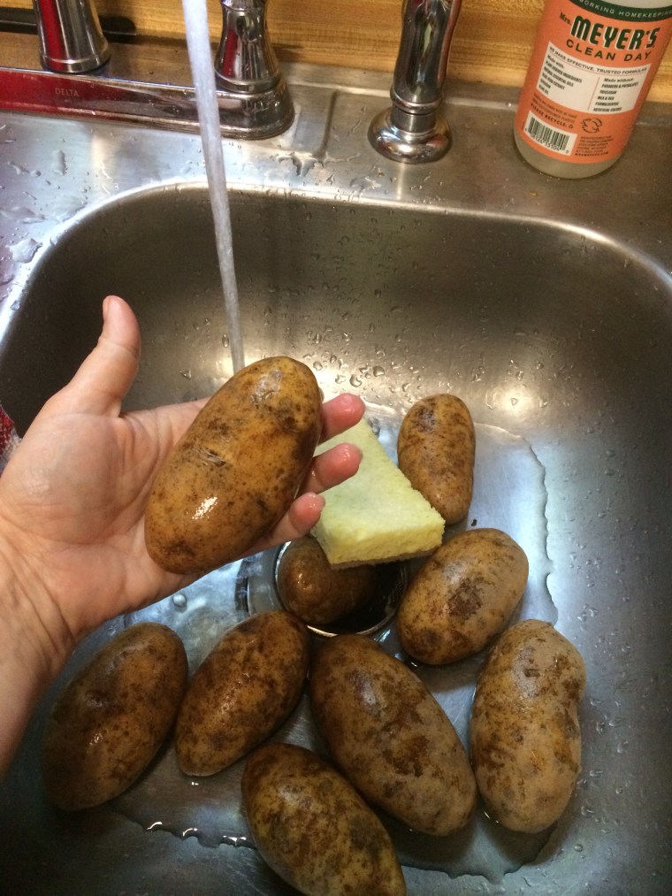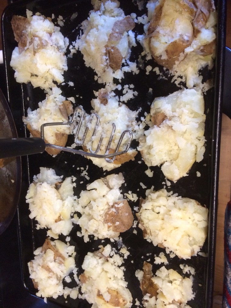 I used some regular Russet Potatoes, which I cut in half, but I think they would be great with red potatoes as well.