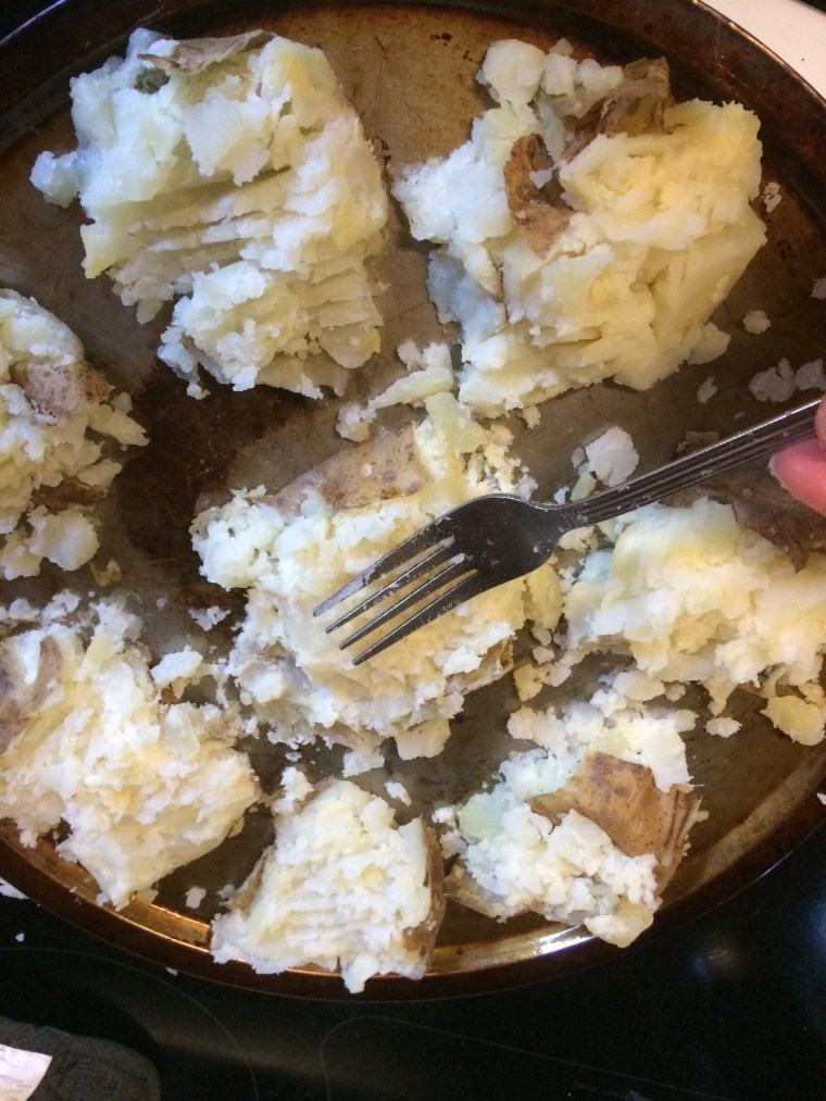 For loaded potatoes, you can top with sprinkled cheese, chives, and bacon bits. Broil 5-10 minutes.