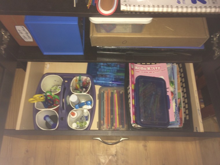 It was really hard to find the motivation to do this. I finally just sat down with a pen and paper and planned out what I needed to happen. I knew we needed a place for books, art supplies, basic supplies, tech stuff, and the teaching supplies needed to be better organized. Not to mention I needed an office space.