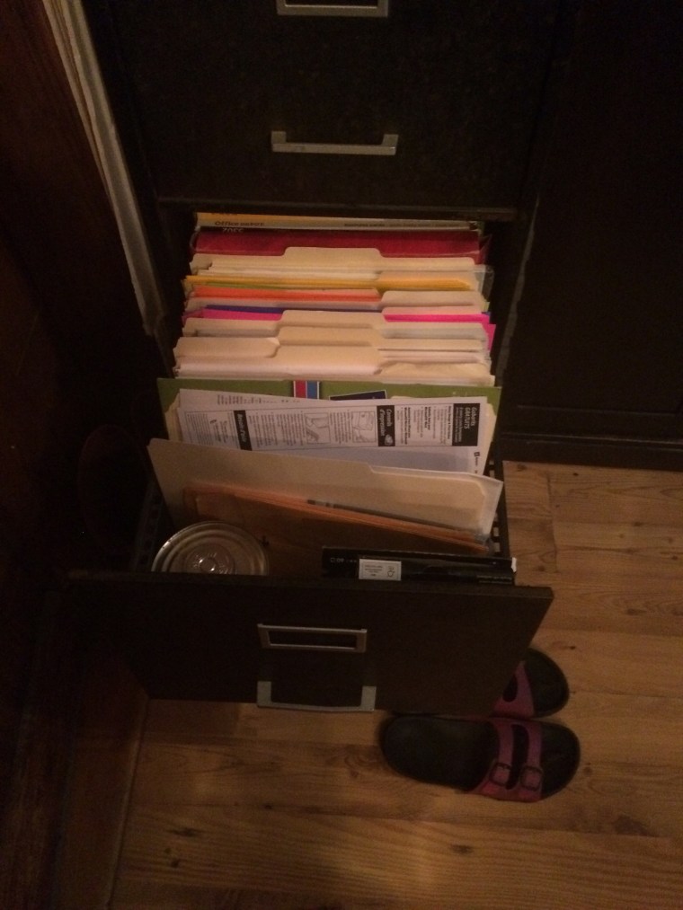 The only area left to tackle was the metal filing cabinet I had in the corner behind the door. It was semi organized but not anywhere close to what I had it before we moved.Here are the after pics: