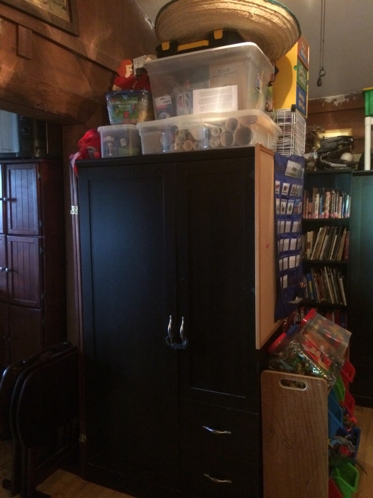 The next area was what is now the supply cabinet. We couldn’t even get into it without moving a ton of stuff first.