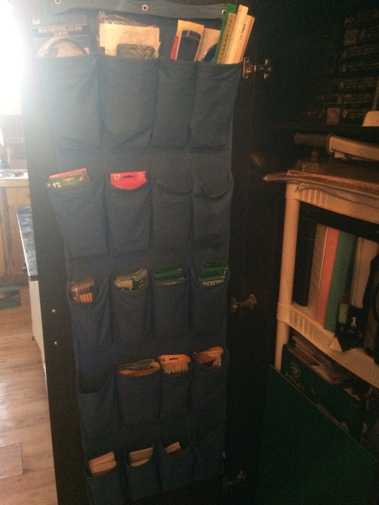 I love issuing shoe organizers for a variety of things like storing extra supplies. We also had to use totes to store some things up on top.