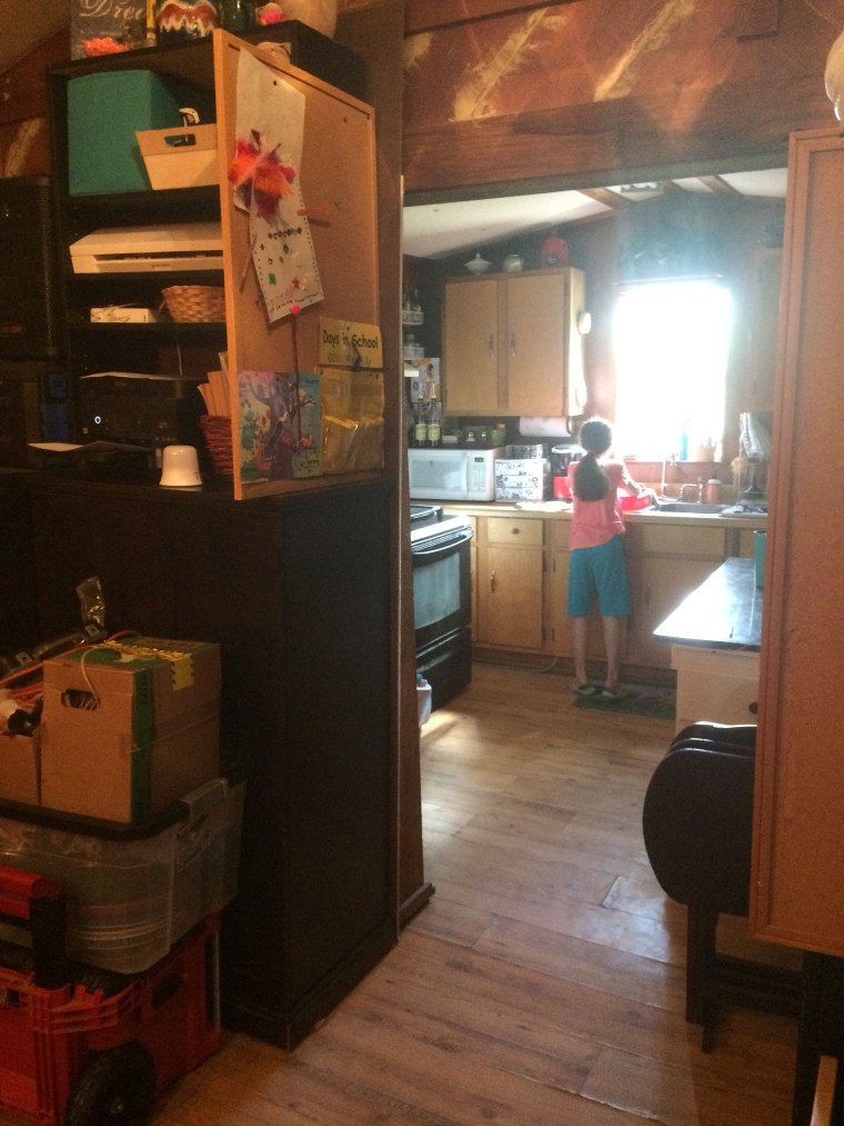 This is a view into the kitchen… I’m really loving how much this opened up the walkway. I did manage to get those boxes on the left put away.
