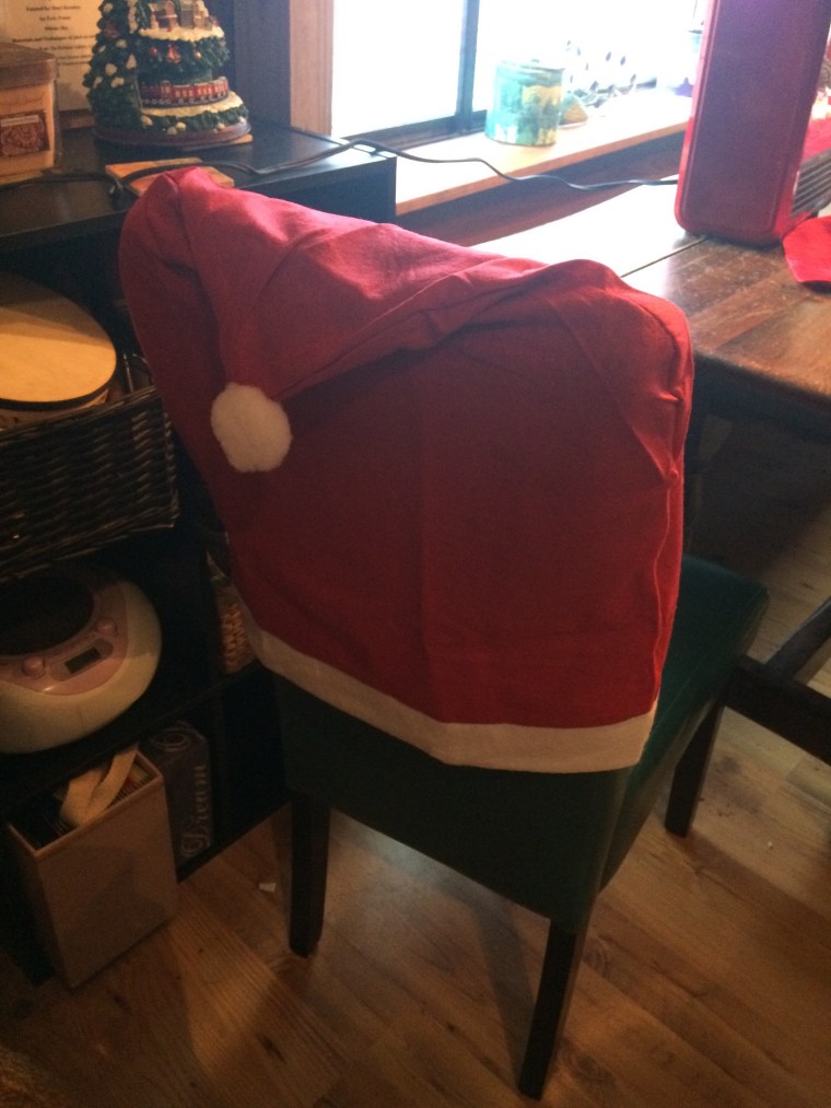 Santa had even decorated a little bit and put these cute covers on the chairs.