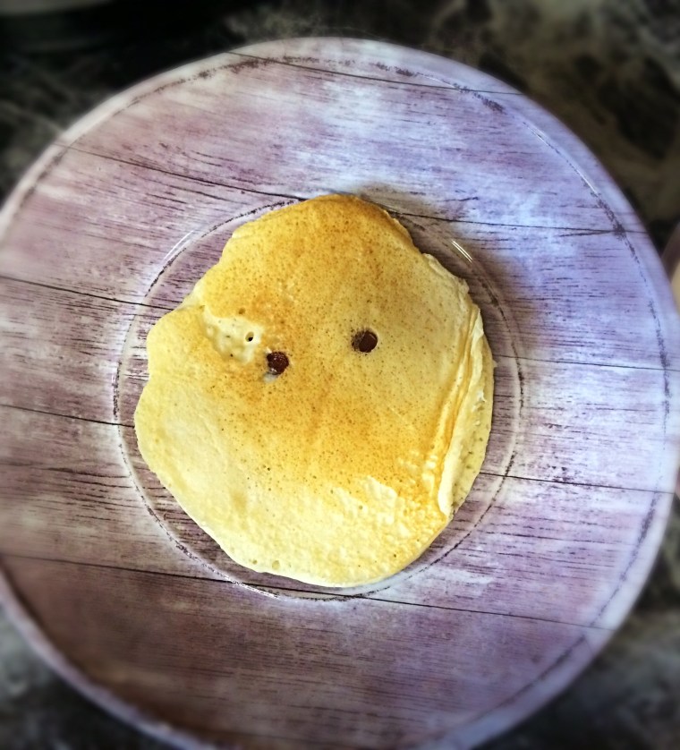 This year I added the chocolate chips to the pancakes while on the griddle for our Santa Claus Pancakes. I forgot to pick up some fresh strawberries and blueberries so we made do with what we had here. I also didn’t realize that Mr. Jacob had added a couple of extra chocolate chips to Santa’s beard… lol!