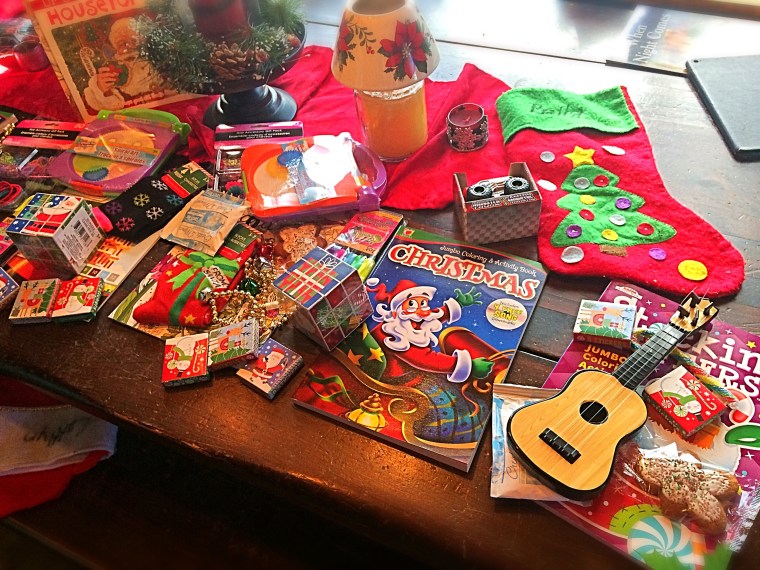 Well the countdown to Christmas has officially started here. The kids are super excited after St. Nick stopped by sometime late last night. They had left their stockings on the table before bed and woke up to a big surprise!