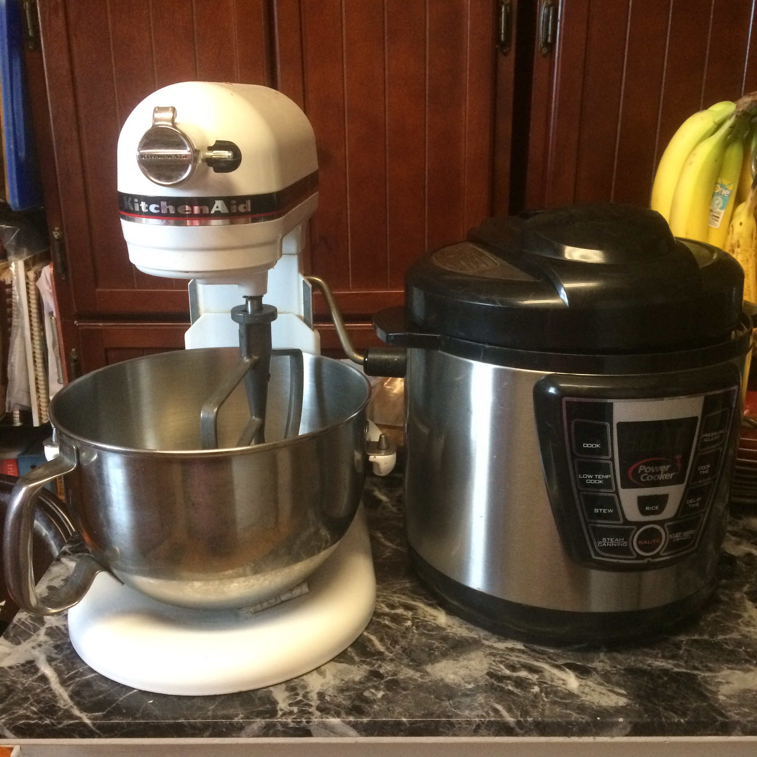 Yesterday I cooked all of the chicken breasts in my Power Cooker which has been sitting, neglected, on top of the cabinet. I shredded the cooked chicken with my mixer and then used some for chicken salad and managed to put away 3-quart bags in the freezer for other meals later on.