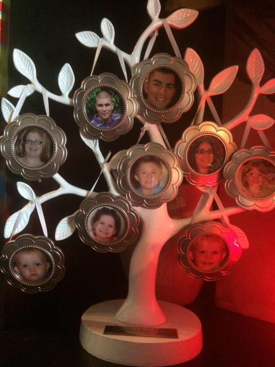 I have a few ‘traditonal’ collage style frames but no place to hang them. I also have a few photos on this ‘family tree’ display that was given to me several years ago. I really do love this even though I need to try to find a few more small frames to add my son-in-law and daughter-in-law to this.