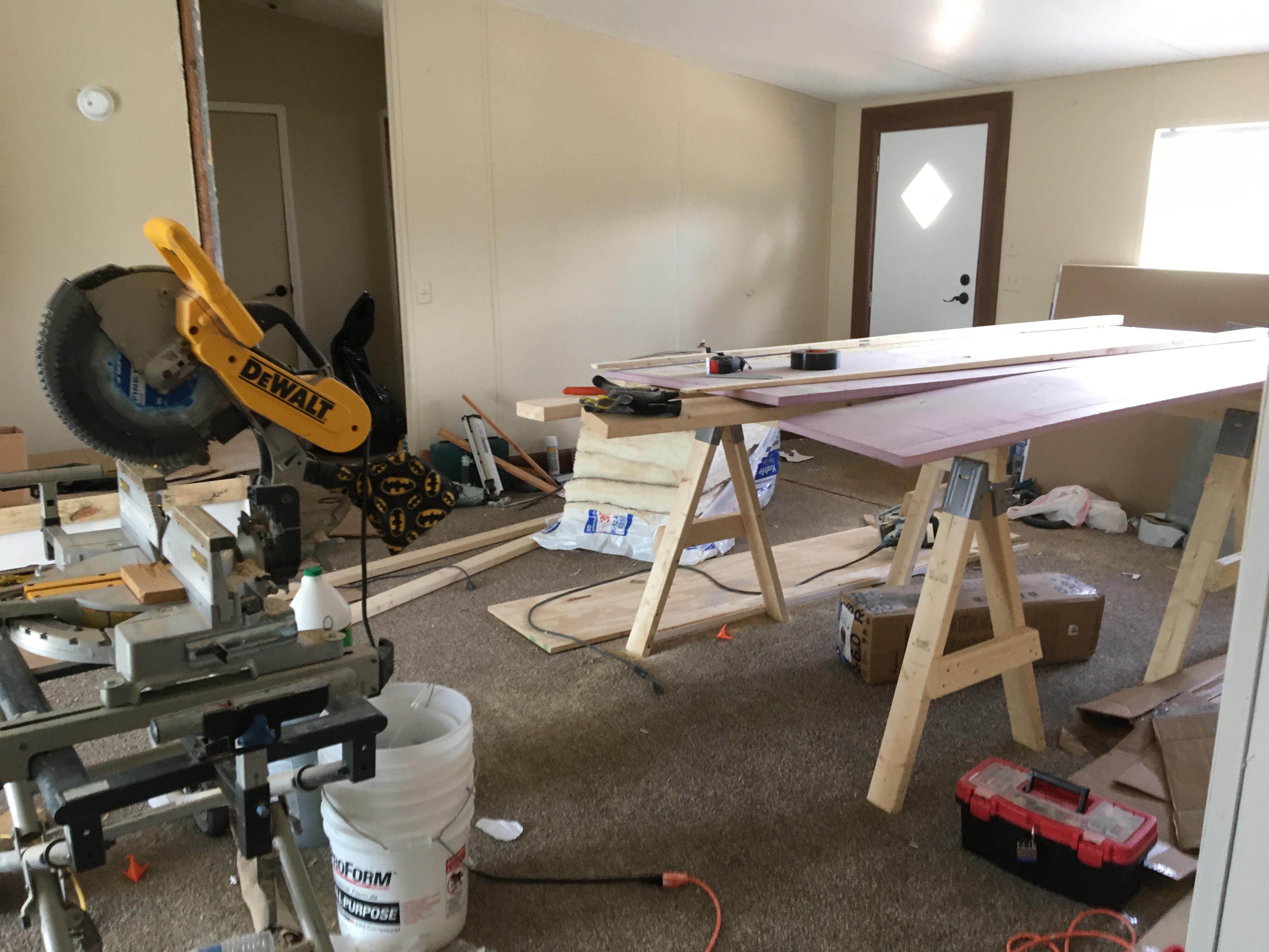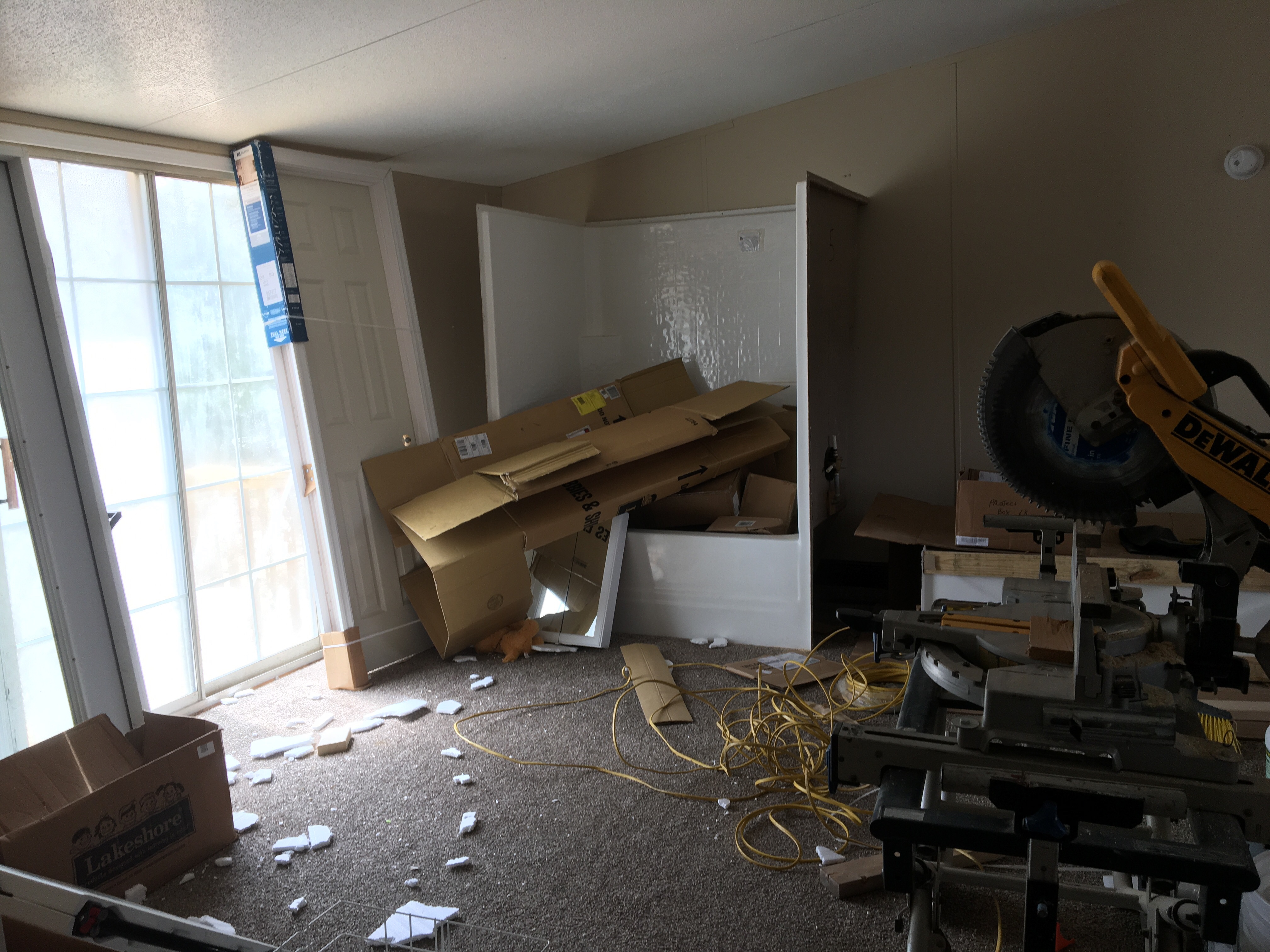 Our plan is to eventually make the ‘great room’ our homeschool area but right now is a construction zone.🚧 The bathroom issues really messed up our plans and then the electrical and plumbing issues didn’t help either.