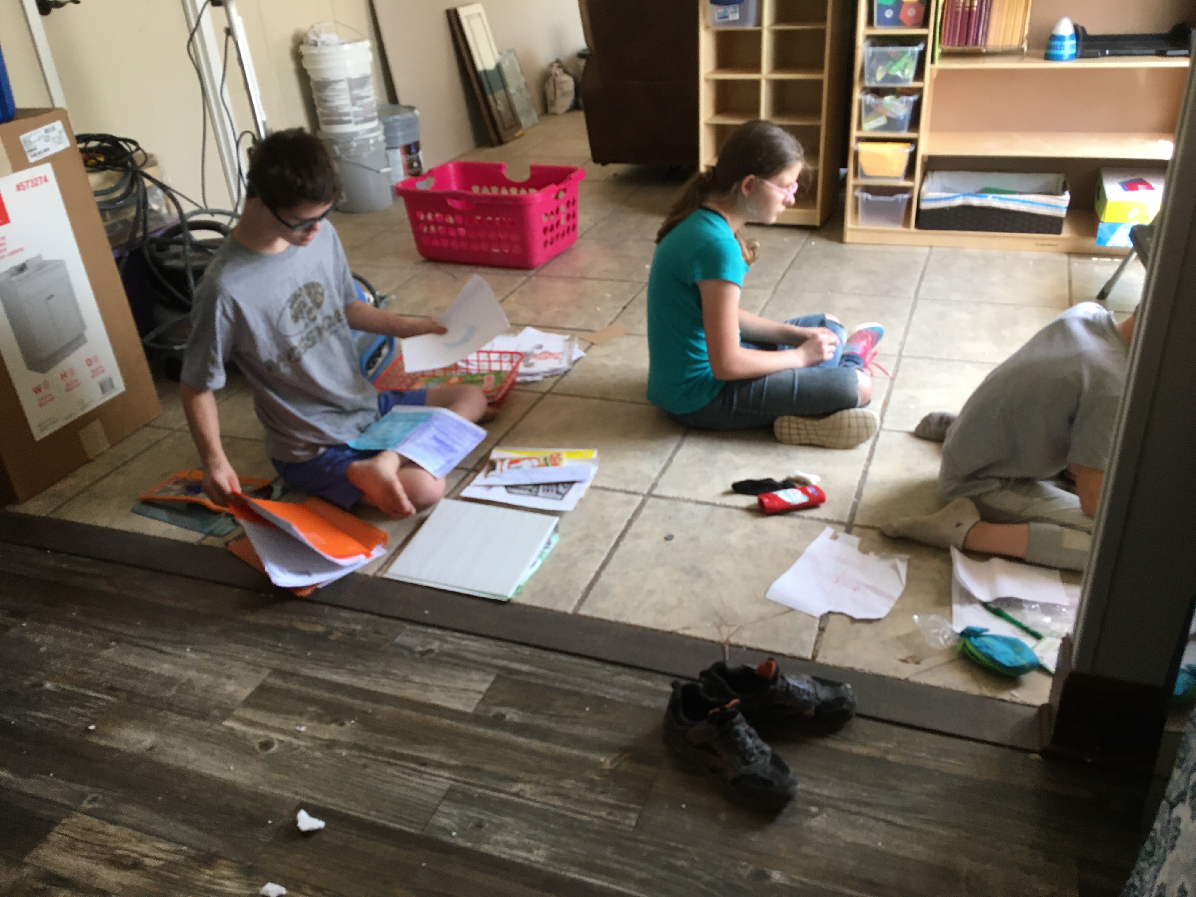 We moved quite a few loads of homeschool supplies and we got their cubbies set up. They weren’t too happy that Momma had them clean out their work boxes.
