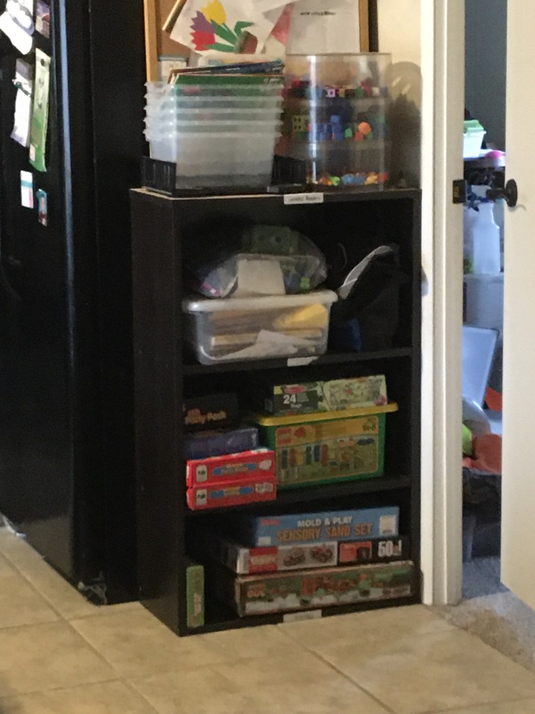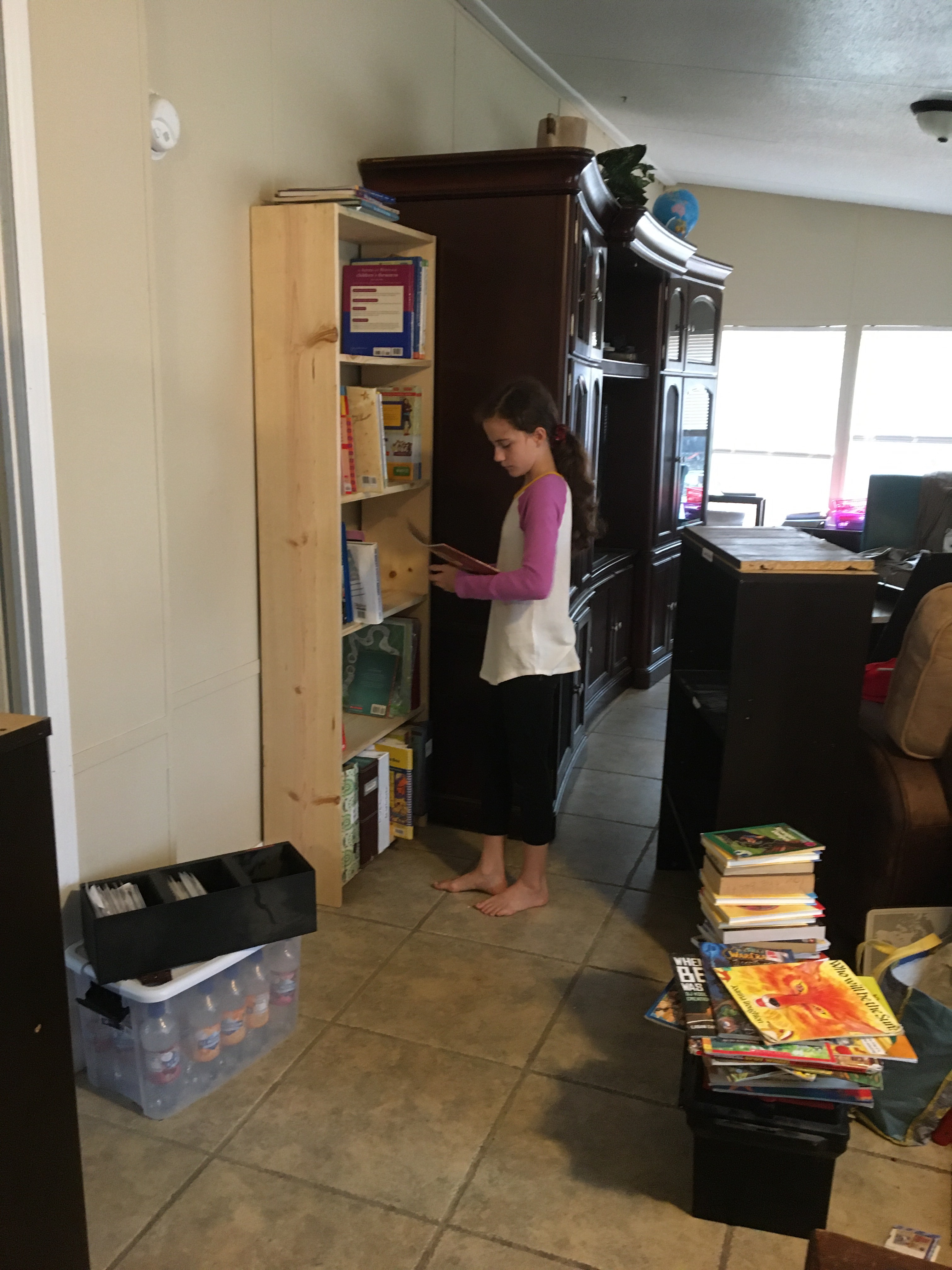 With no place to put the books we weren’t able to put the table together which meant that we had to eat around the island or standing at the counters… the kids thought this was fun at first but that has worn off since.