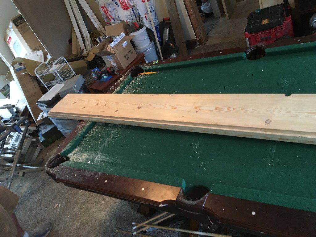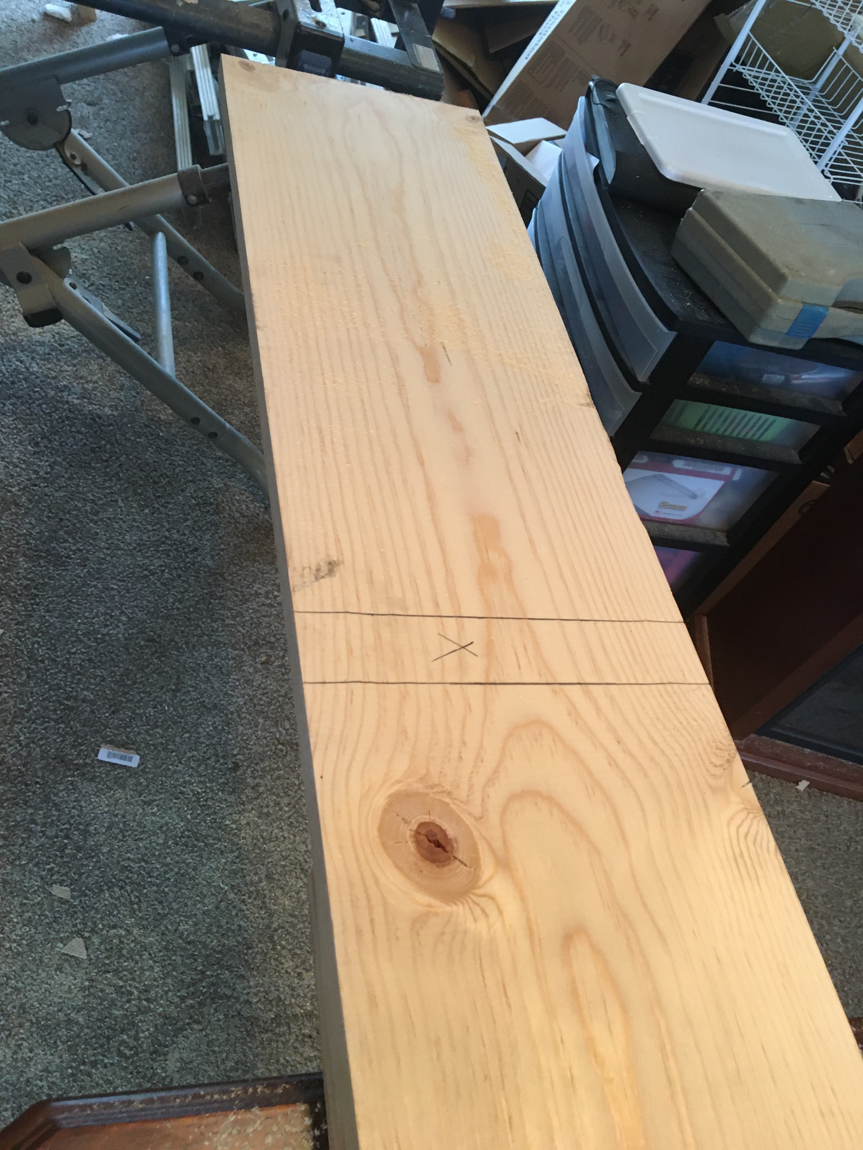 Four boards were cut to make four six foot pieces and four pieces that were 22.5 inches long. These would be the sides,tops, and bottoms.