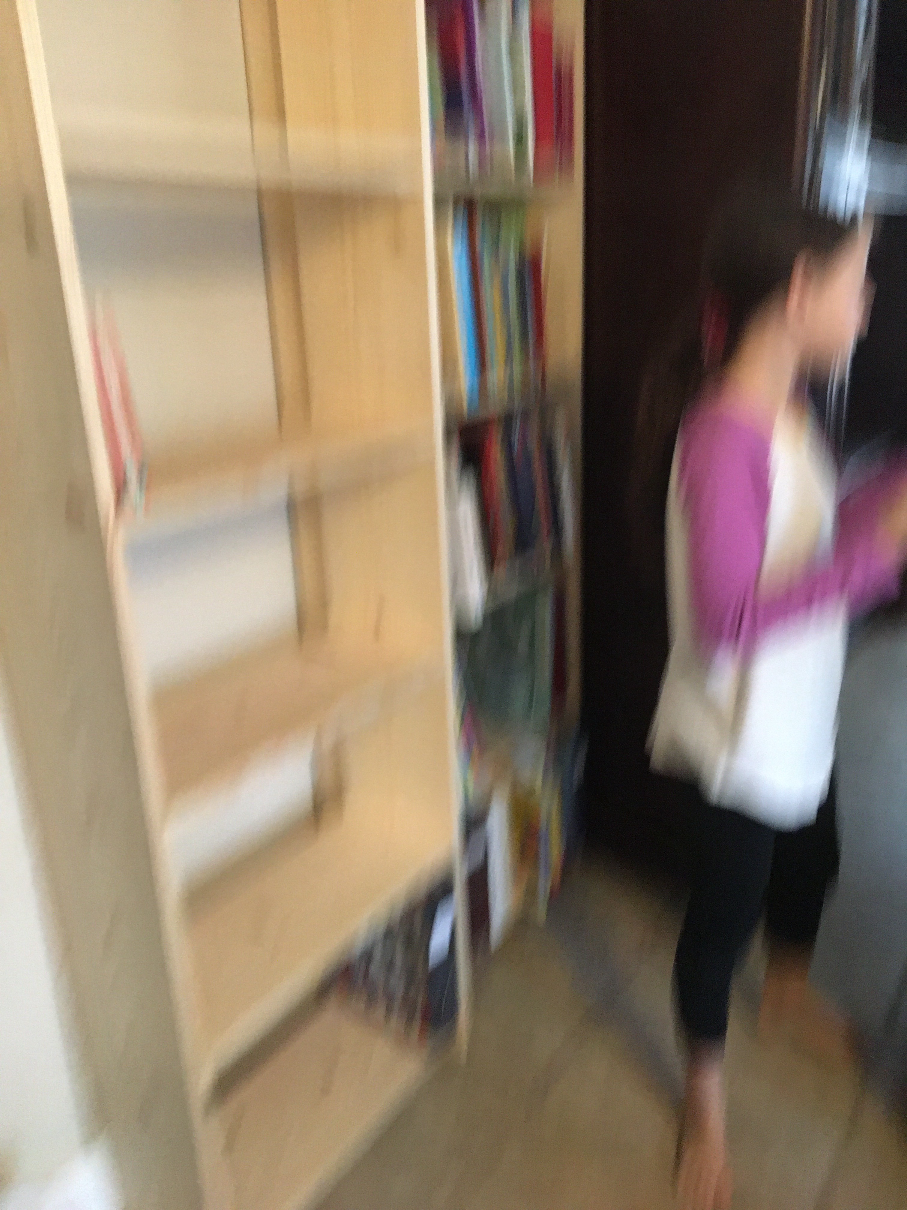 Ms. Bella didn’t waste anytime getting the books put up. Momma needs to organize them but I’m so happy they are out of the floor.