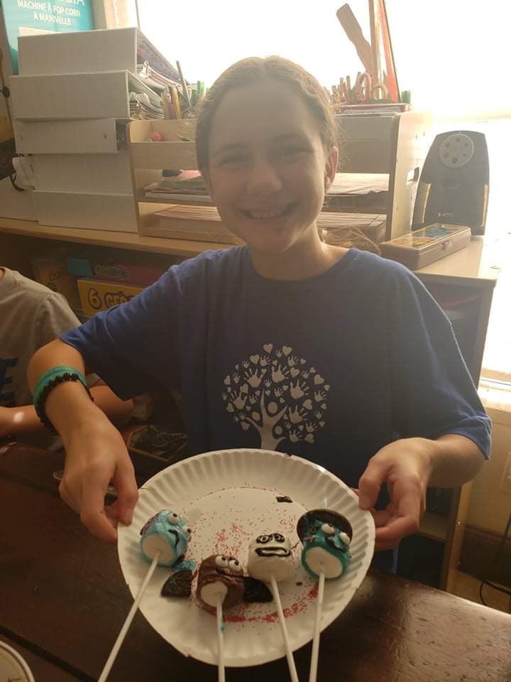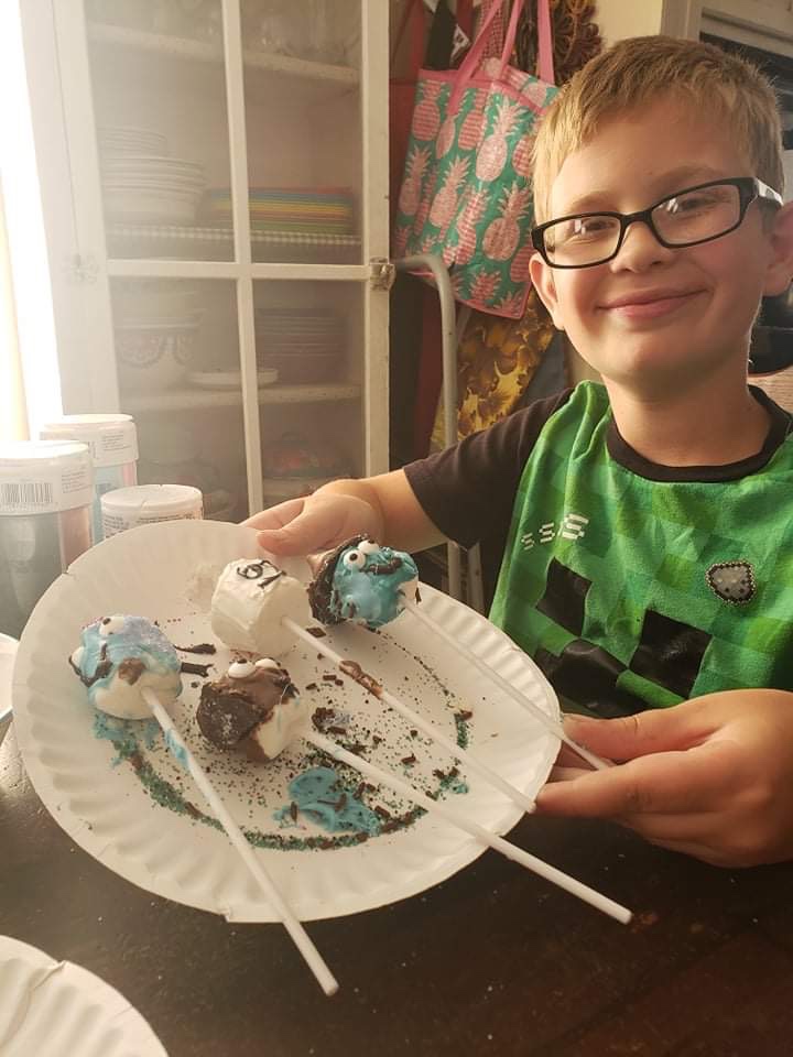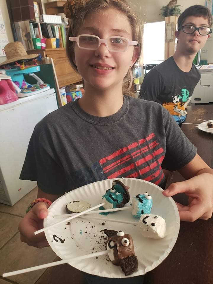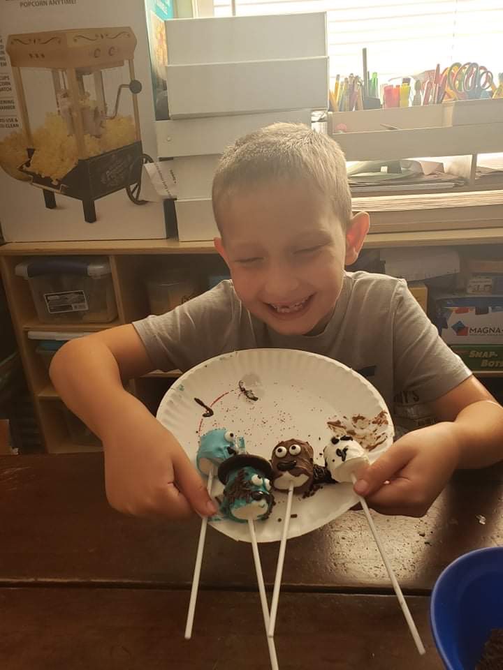 And here’s a few of the other kiddos at home making some yummy treats for Sissy to bring to us: