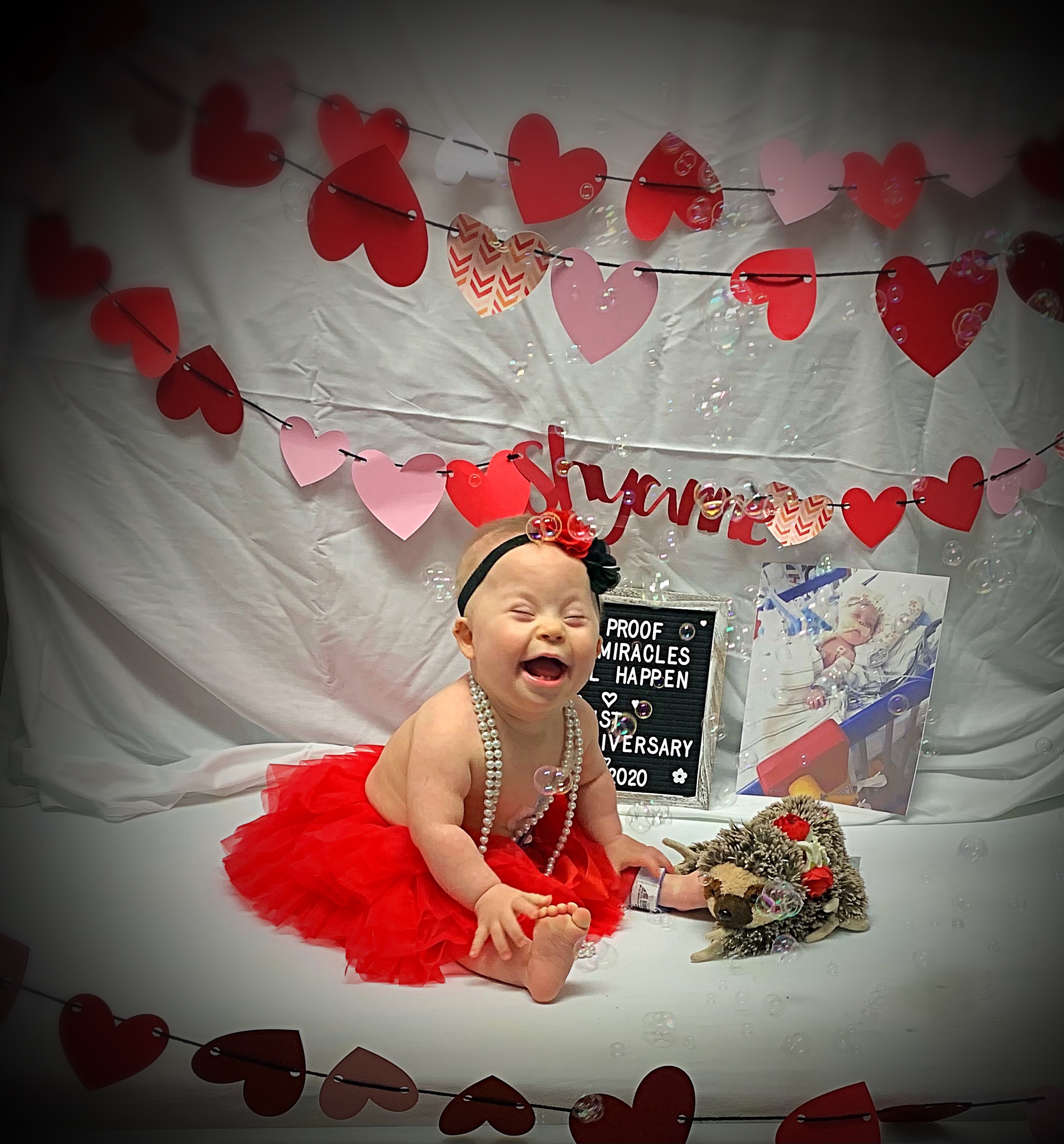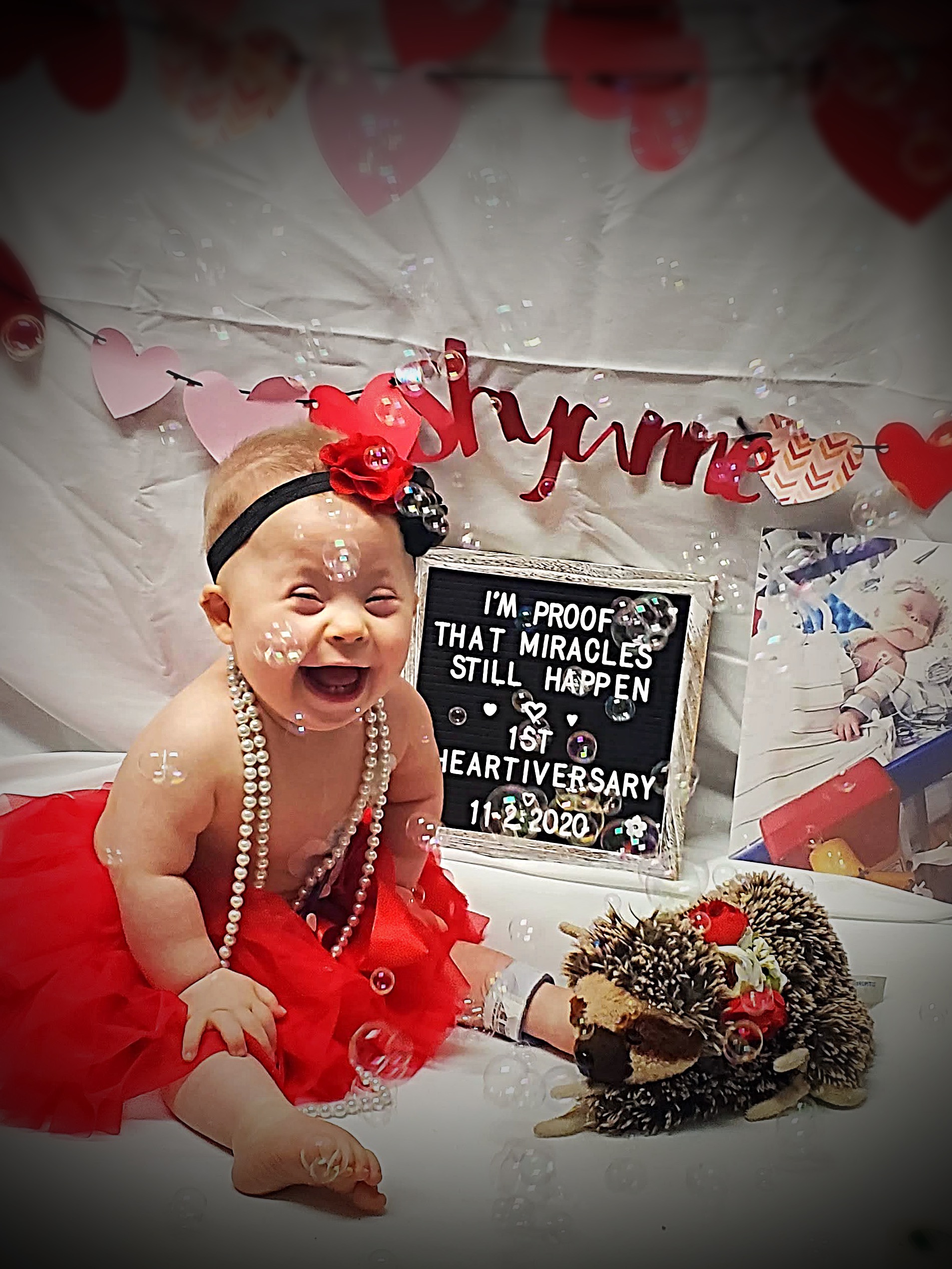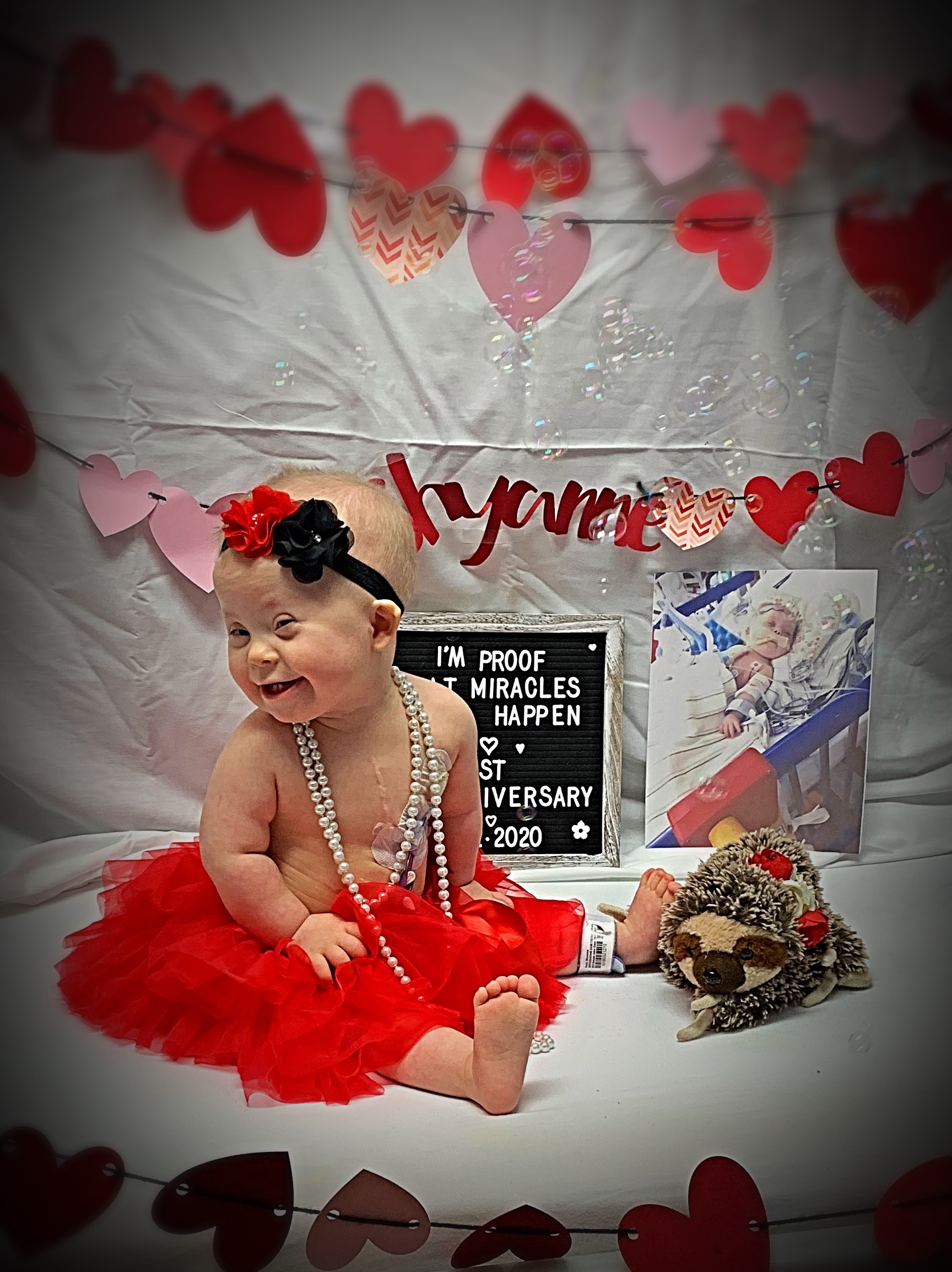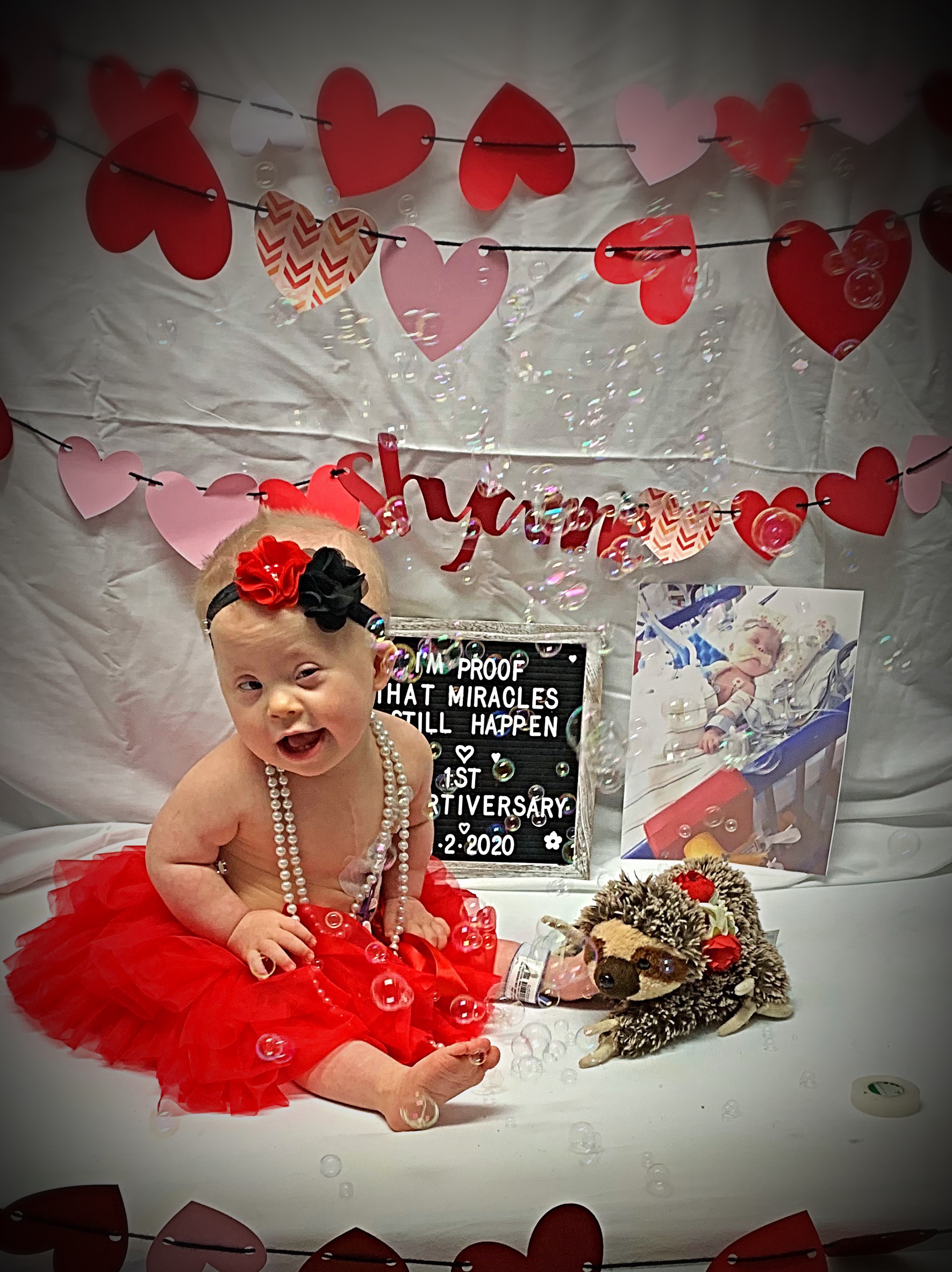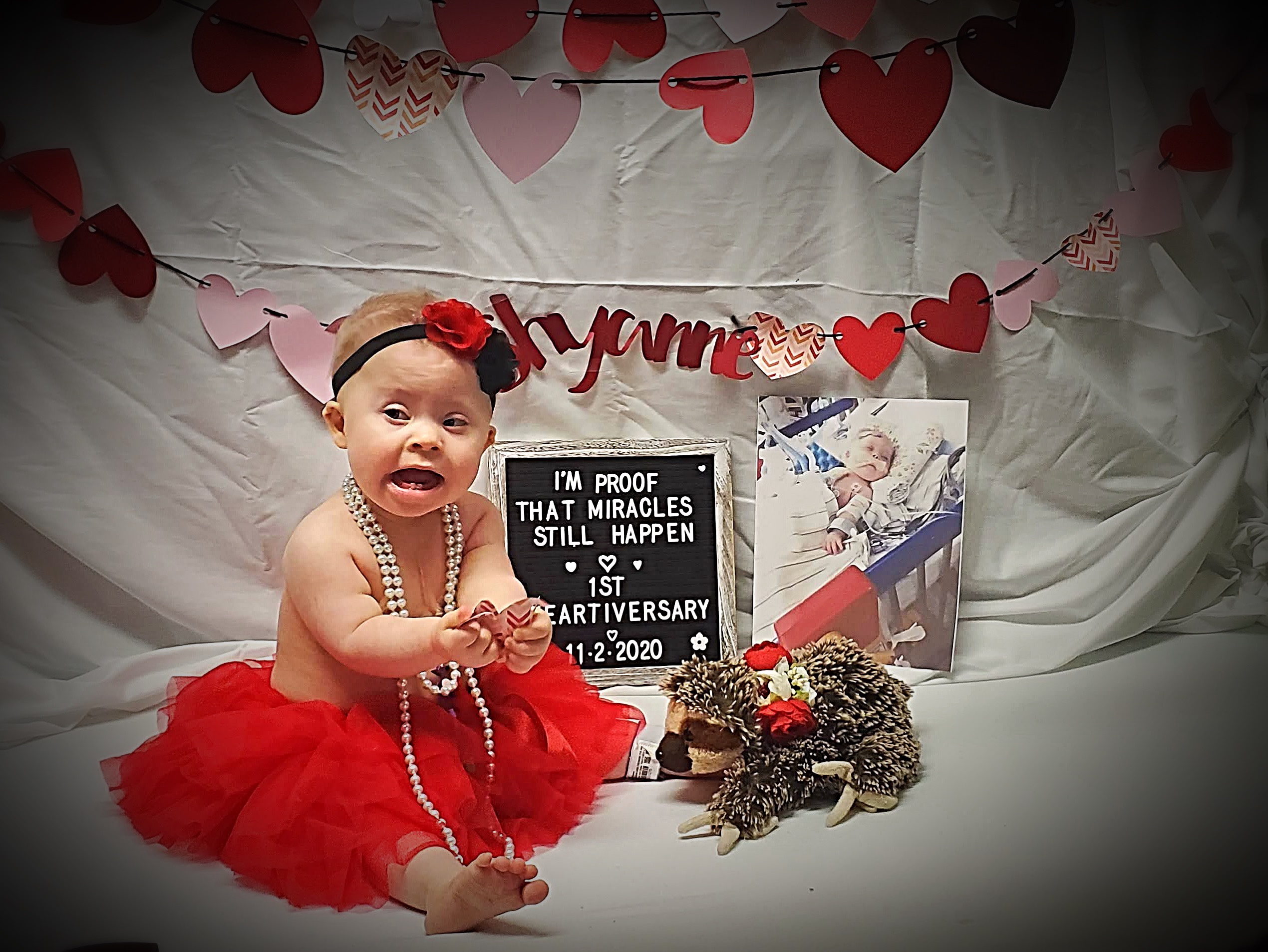 I also wanted to share some pics that we’ve taken recently. Yesterday was her first heartiversary so we did a quick photo shoot at the hospital and they turned out so cute!
