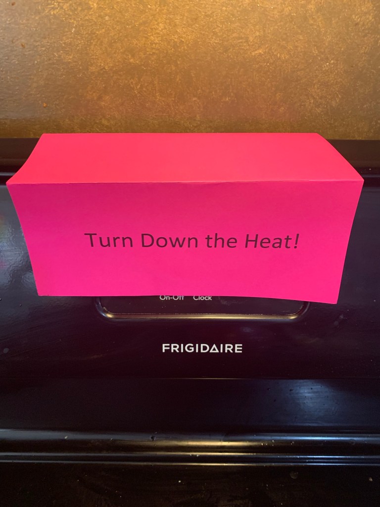 I came up with a very simple solution to prevent this from happening so much… nothing is perfect and everyone forgets. I made a sign with a plain piece of paper that just folds over the clock on the stove so that they have to move it in order to set the oven… sometimes it’s the simplest idea that can make the biggest difference!