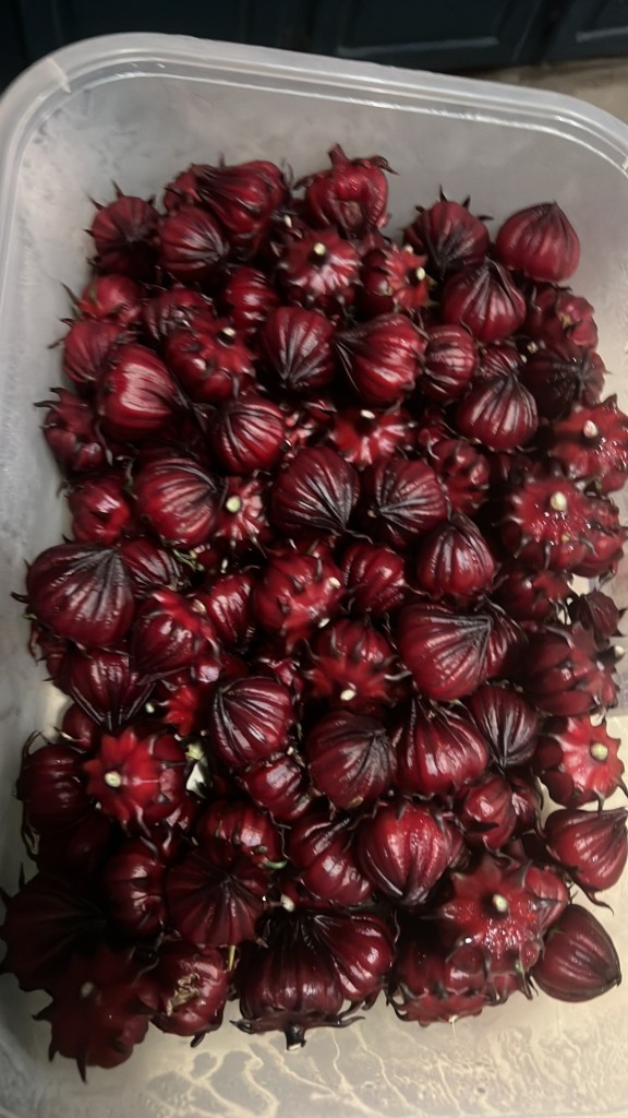 One of the most interesting things we’ve planted so far has been the Roselle/Rosella flowers. It grows into a nice-looking shrub-like bush with pretty white hibiscus flowers. Apparently, every part of the plant is edible and tastes a bit like cranberries… hence the name ‘Florida Cranberry’. We have tried the leaves cooked and they are pretty good although a bit on the tangy side so we mixed them with a few mustard greens and it tamed the tang level down a bit. We have also eaten the raw petals as snacks… yummy! We harvested a bunch of them yesterday before the kids could eat them all. We will try to make some jam, syrup, or drinks from them soon. I am linking a few of our favorite YouTube channels in this post so you can check out more information if you feel inclined to do so.
