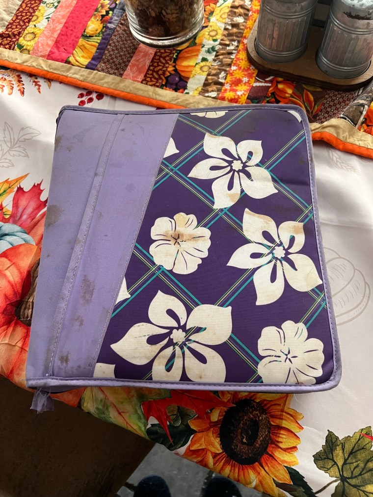 This is what the outside of the planner looks like… nothing special at all but the fact that it is purple helps me to identify it from other binders on the shelf and I can tell almost anyone to grab me the purple binder and they have no trouble finding it all. I probably should’ve tried to clean it up a bit before the pictures but this is how LIFE goes around here and these smudges and smears remind me of all the little blessings that are running through my house!