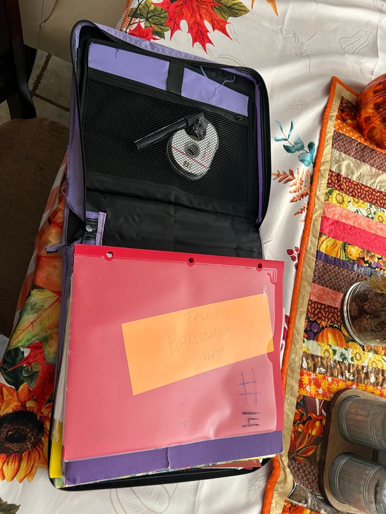 I’ve mentioned in several posts about my Holiday Planning Binder but I don’t know if I’ve ever really shared what it looks like. It’s definitely nothing fancy… just an old Trapper Keeper that the kiddos didn’t use and the folders are old pocket folders that they aren’t using. I really like that it zips up because it helps to keep everything contained really well and prevents the inevitable spillage that happens when you have kiddos running around.