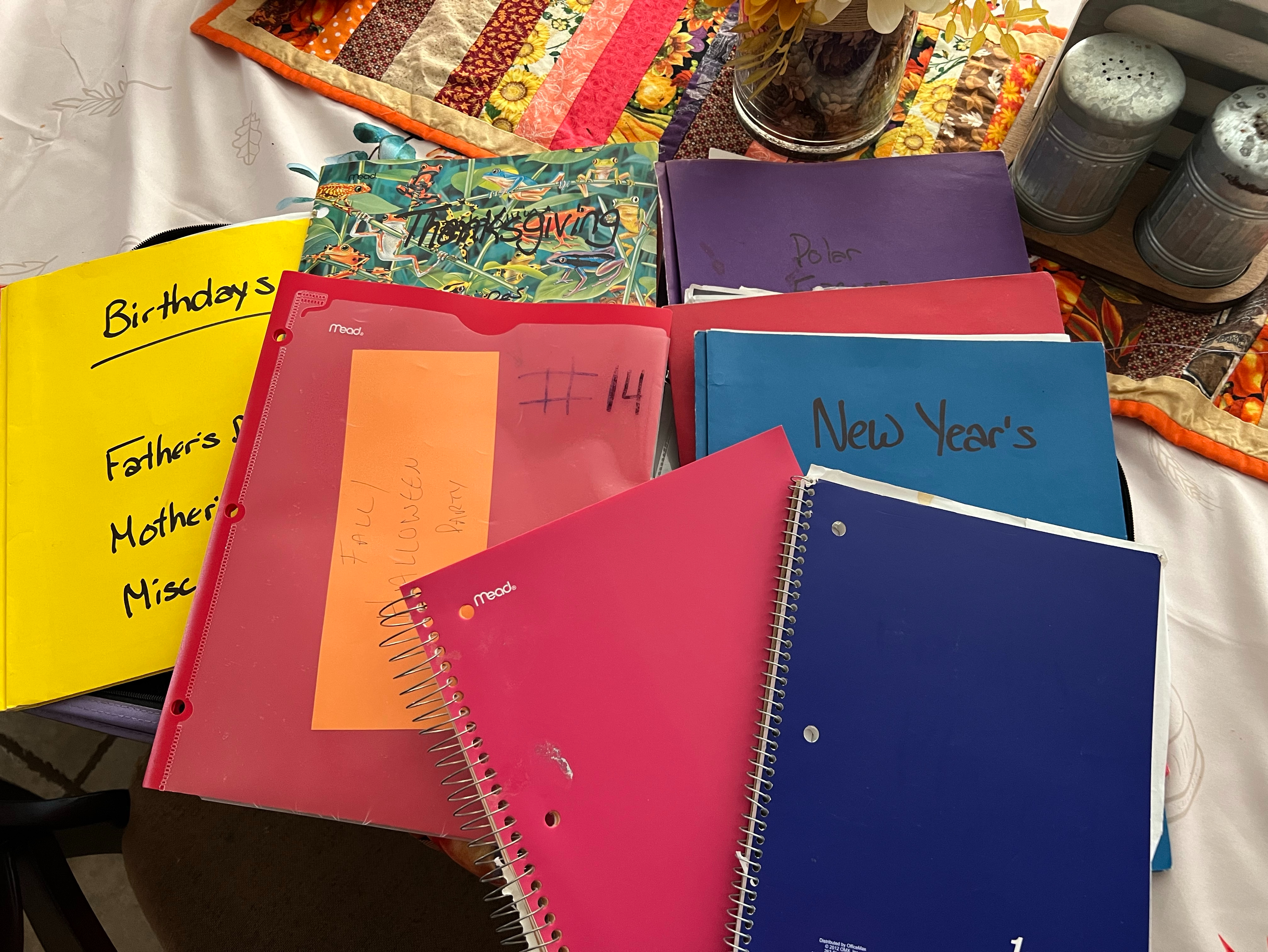 As you can see…. nothing special here either. I have several folders and each is labeled with a special occasion and each folder contains notes, recipes, and ideas for these celebrations as well as past menus and notes. I don’t have one for Easter but I think those notes are in the Yellow folder right now… I need to make a new folder for Easter as we have been trying to host an Easter Egg hunt for the kiddos and a covered dish meal for everyone.
