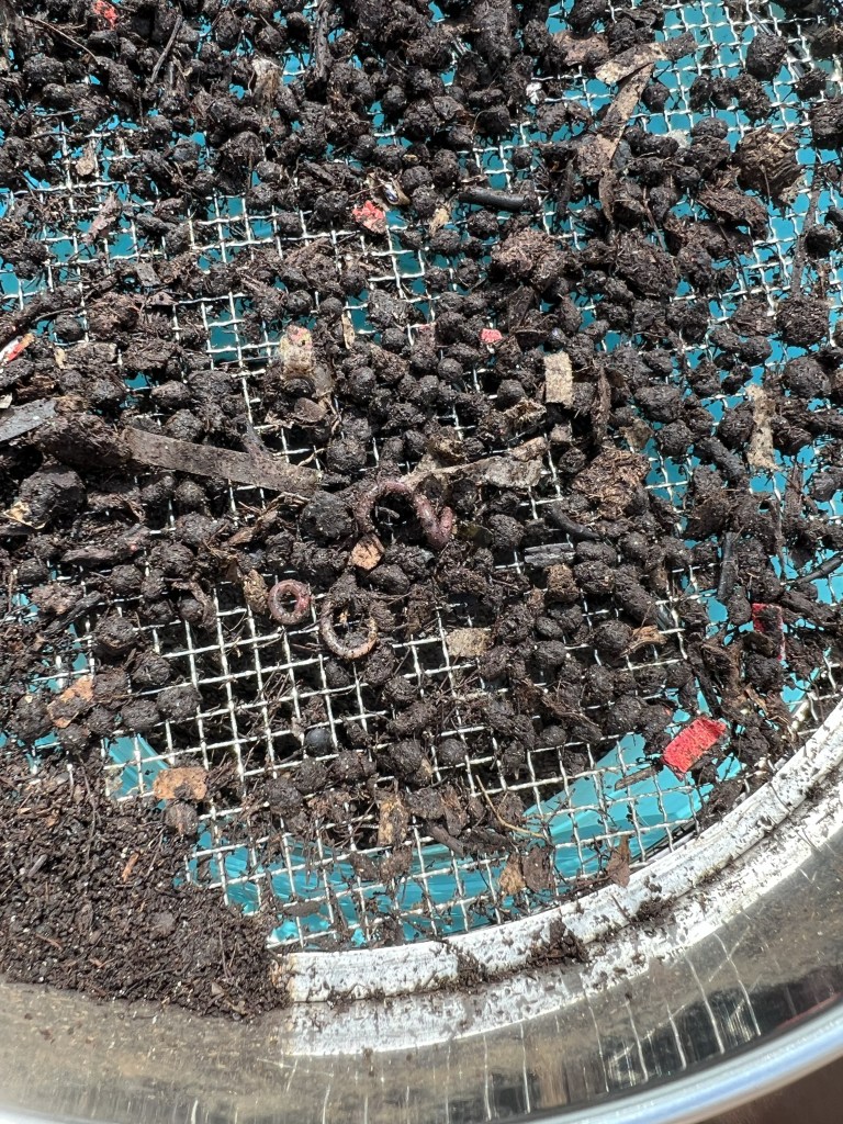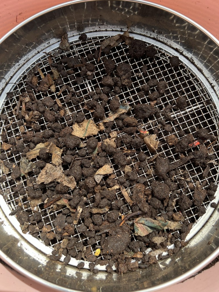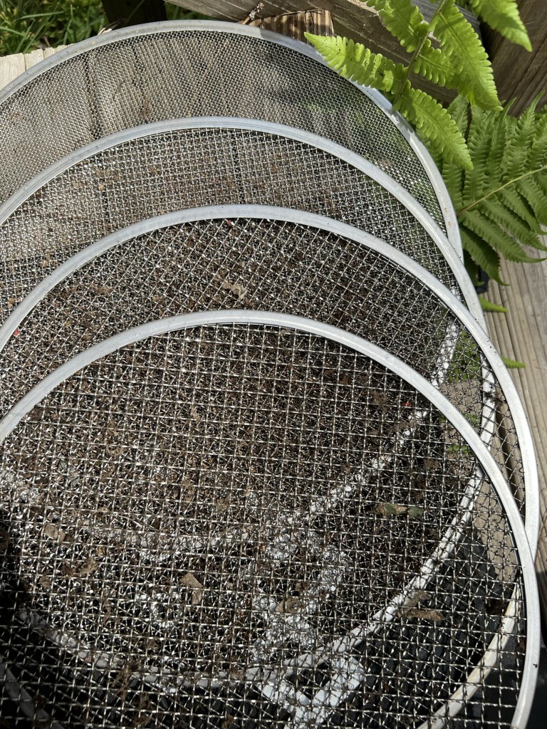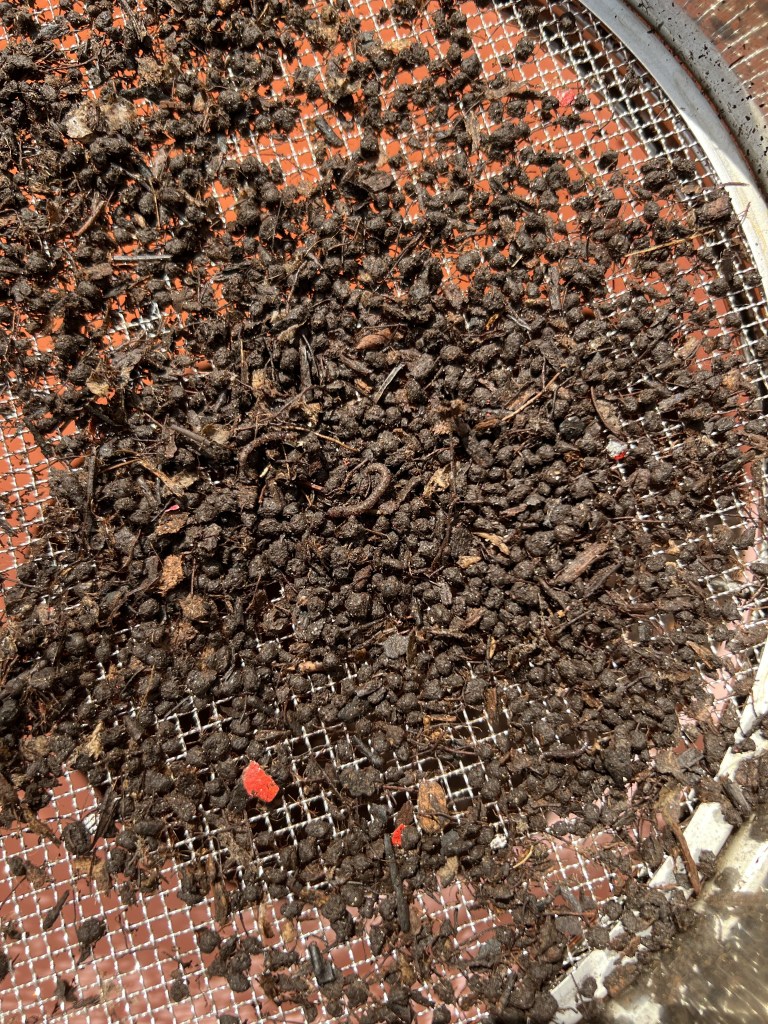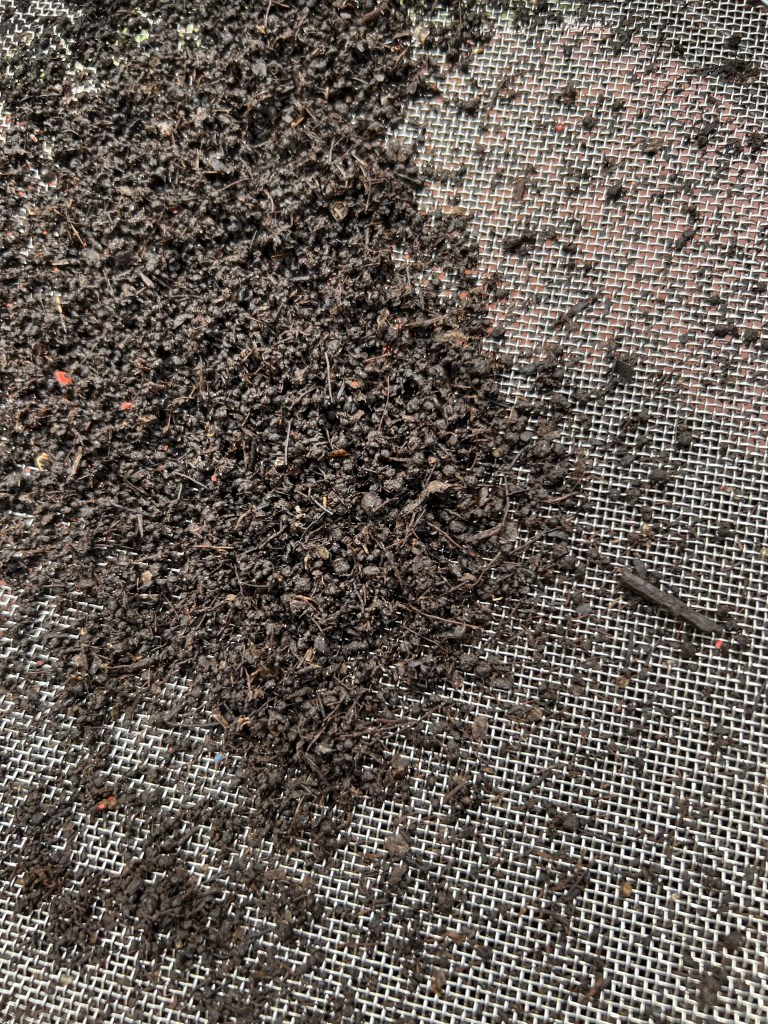 When I was ready to replant the beds I asked Mr. Awesome to sort through the compost bin and he pulled out a bit of compost that was ready and then we let it sit for a few days to give any eggs a chance to hatch. I then sorted through it with some screens that we had purchased on Amazon.