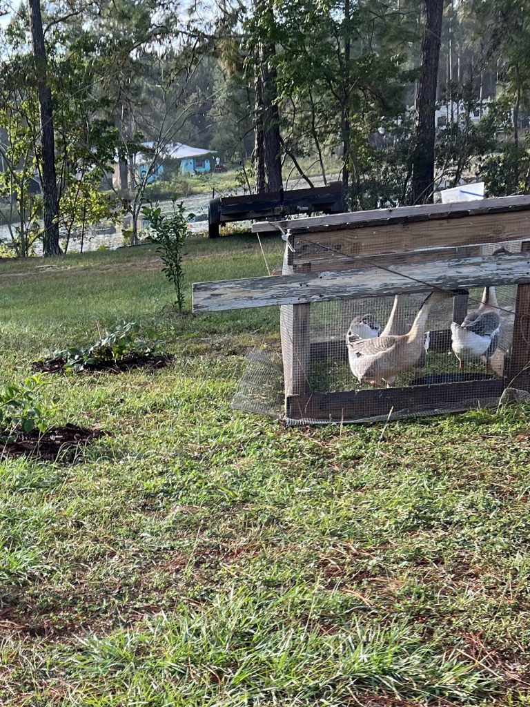 I’ve been watching a lot of permaculture videos and doing a ton of research so that we can try to incorporate more of these methods here at home. We love having the animals to ‘help’ us around the yard and gardens. The animals also benefit from the fresh grass and vegetation but they are being kept safe in the ‘tractors’… so it’s a win-win! We recently made several more ‘tractors’ for some of the other birds and we put the geese in the pen with the goats so they can act as protectors for them.