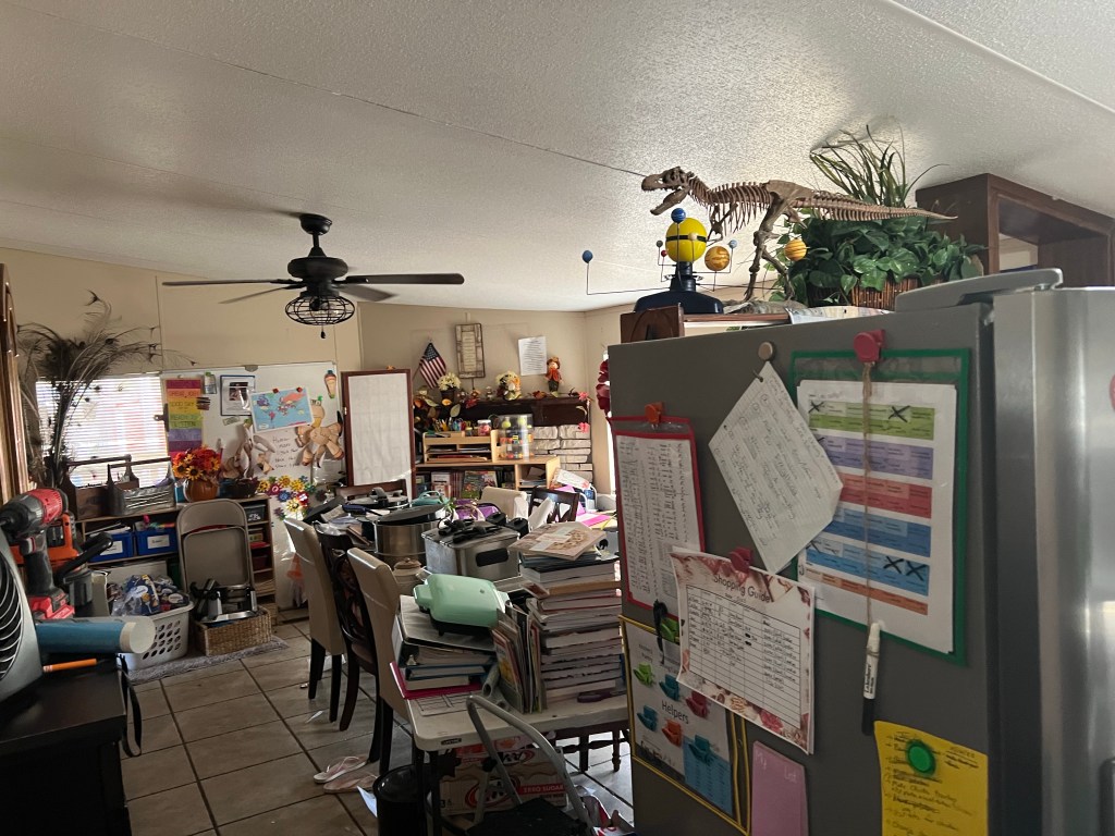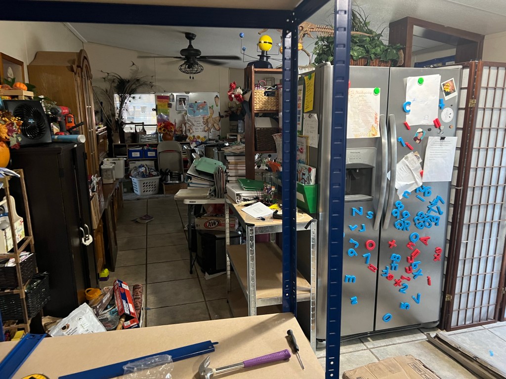 - Cooking- all of our frequently used pots, pans, utensils, and appliances are within arm’s reach of the stove but the others are on an open shelf in the pantry area. I also reorganized the small cabinets above the stove and removed the duplicate spices so that we could actually find what we needed. I made a space for the extra spices on the pantry shelves so we can keep them out of the way until we need them.