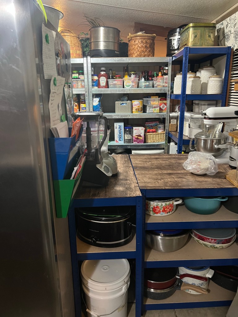 - Pantry – This area holds the bulk of our foods as well as buckets under some of the pantry ‘islands’ that hold the extra flour, sugar, rice, and other bulk foods.