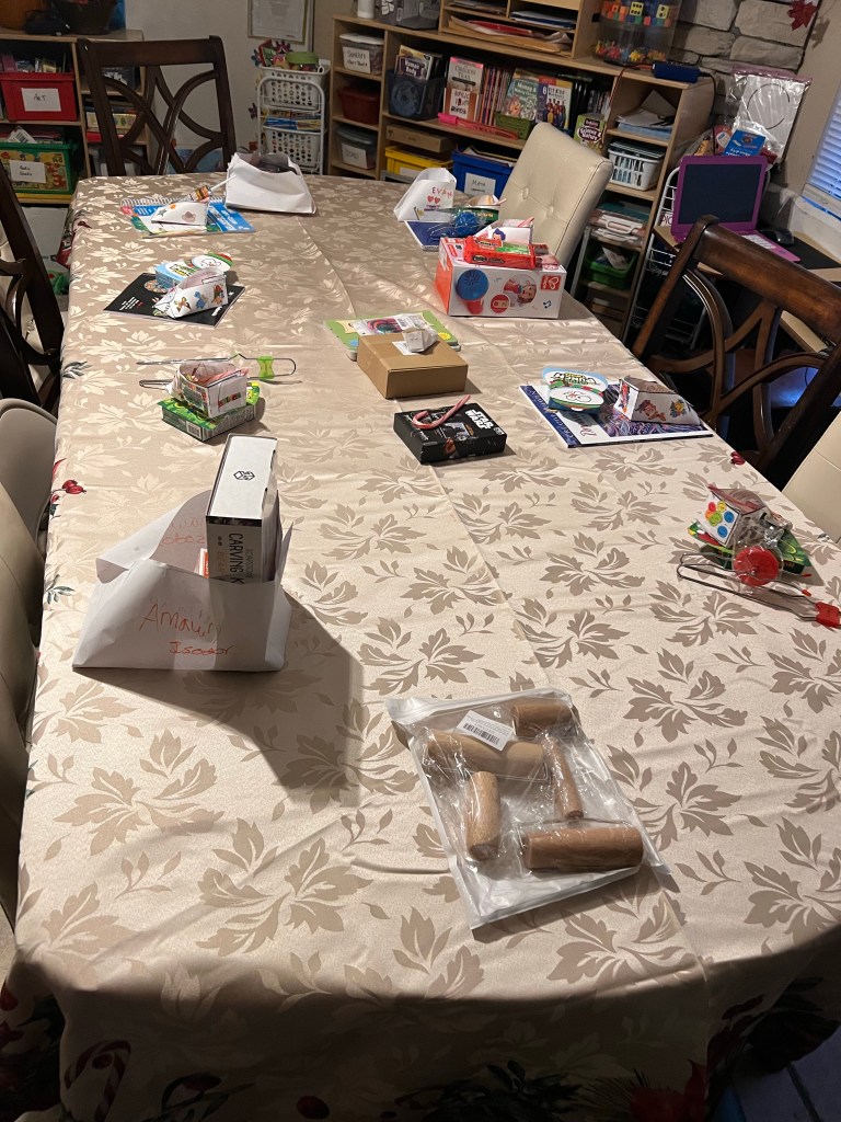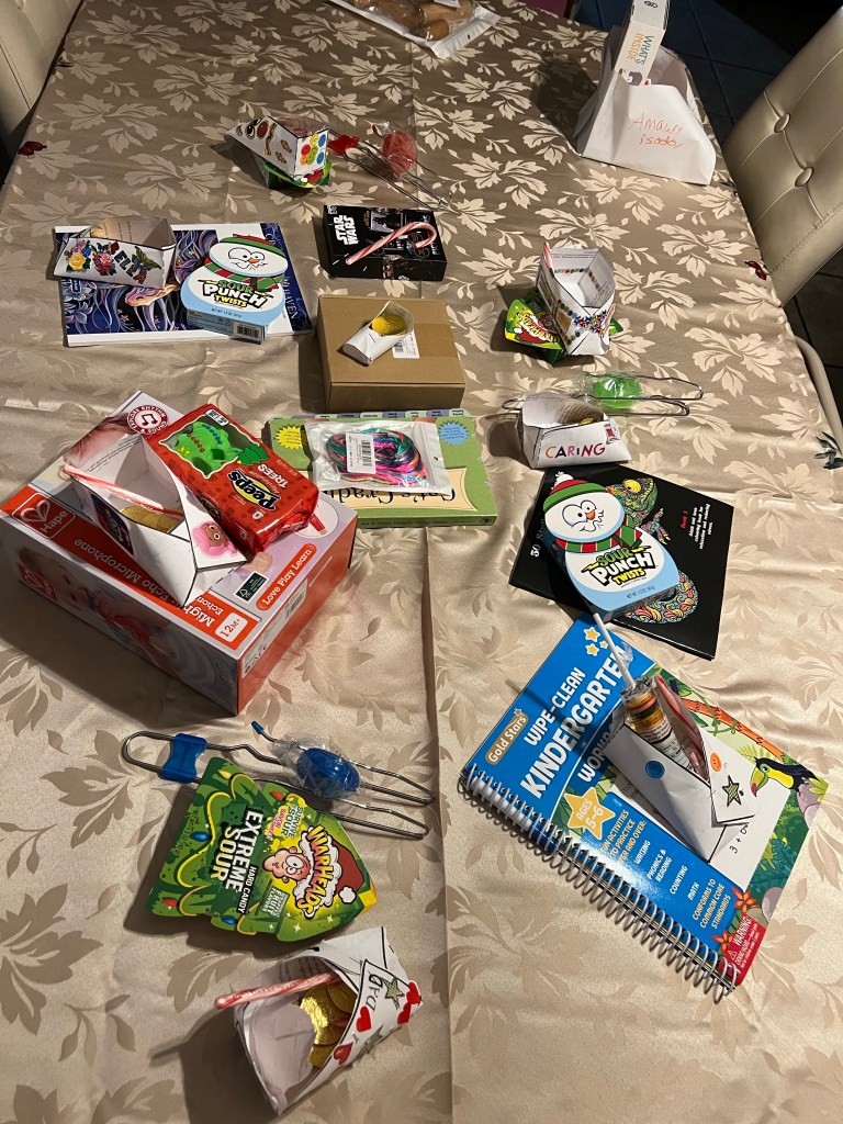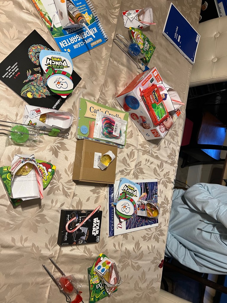 Here are some pictures of the shoes they made and what they got for St. Nicholas Day: