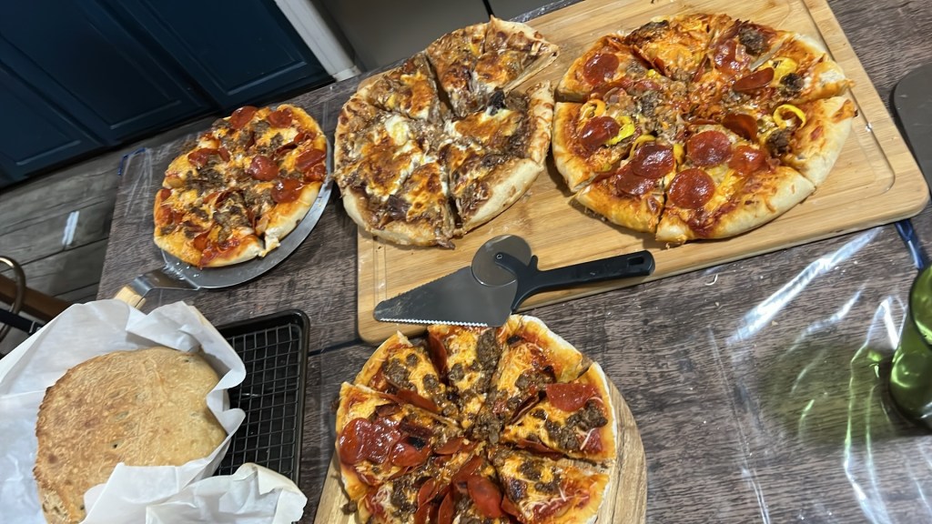 We swapped out pizza night for the BLTs but no one was complaining! The chocolate cake with peanut butter icing is always a hit and we added some chopped mini peanut cups to the top to make it a little extra special!