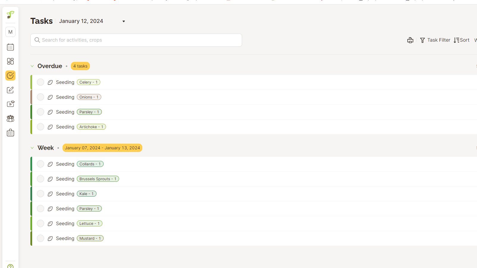 This has allowed me to put in some of the vegetables that I plan to grow and then it tells when I’ll need to seed, prepare beds, plant/transplant, cultivate, and harvest. It then organizes these tasks into a weekly list to help you stay on track… hence the reason I now know that I am a bit behind with my gardening. When I do get around to completing the tasks then the program will update the other dates and harvest times.