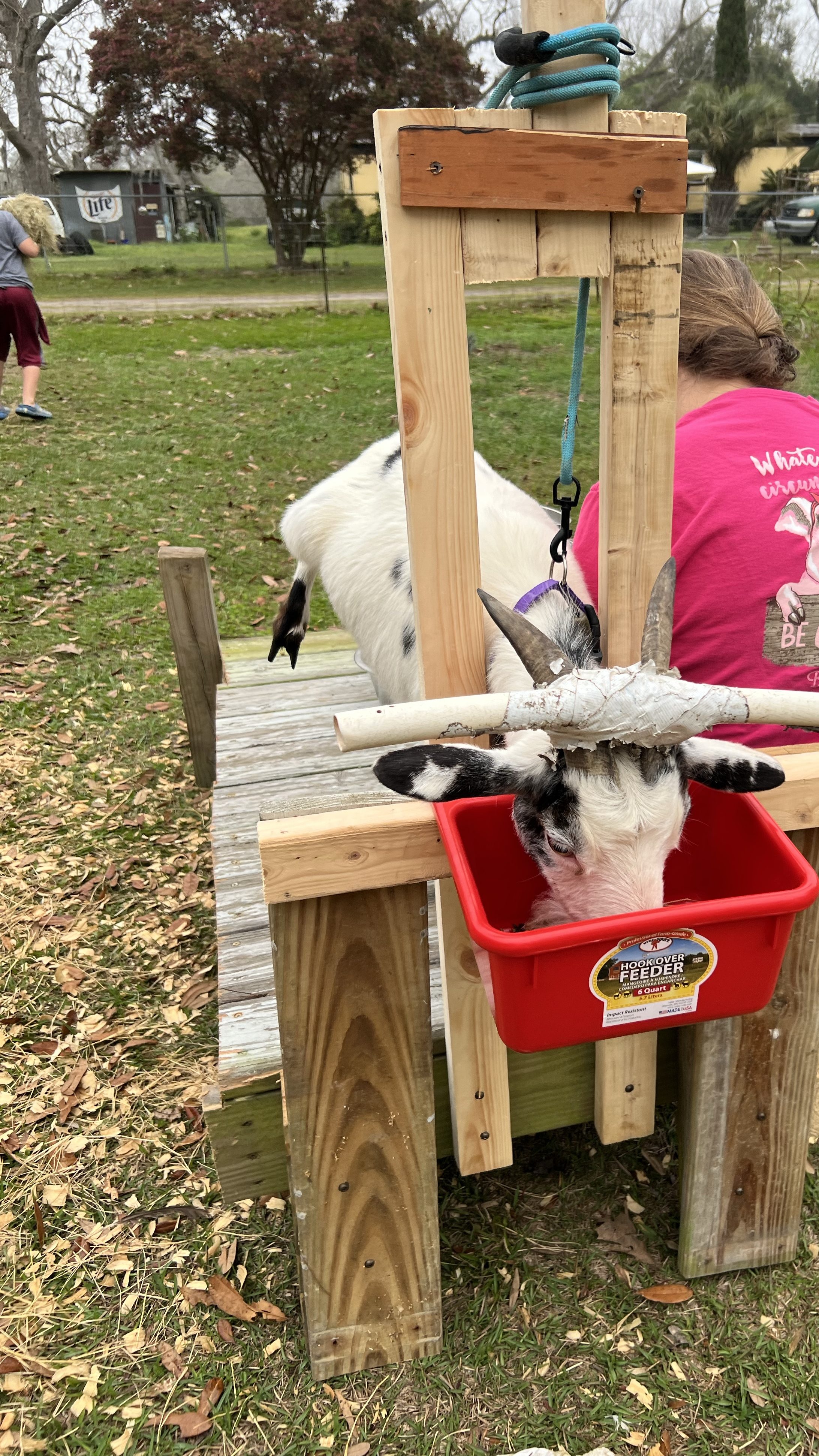 We used some of the old deck that we built the coop out of last year and made a milking stand to use for now… if we decide that we do want to continue to milk the goats then Mr. Awesome will build us a nicer one later on. There are a few adjustments to make on this one but it works well for now.